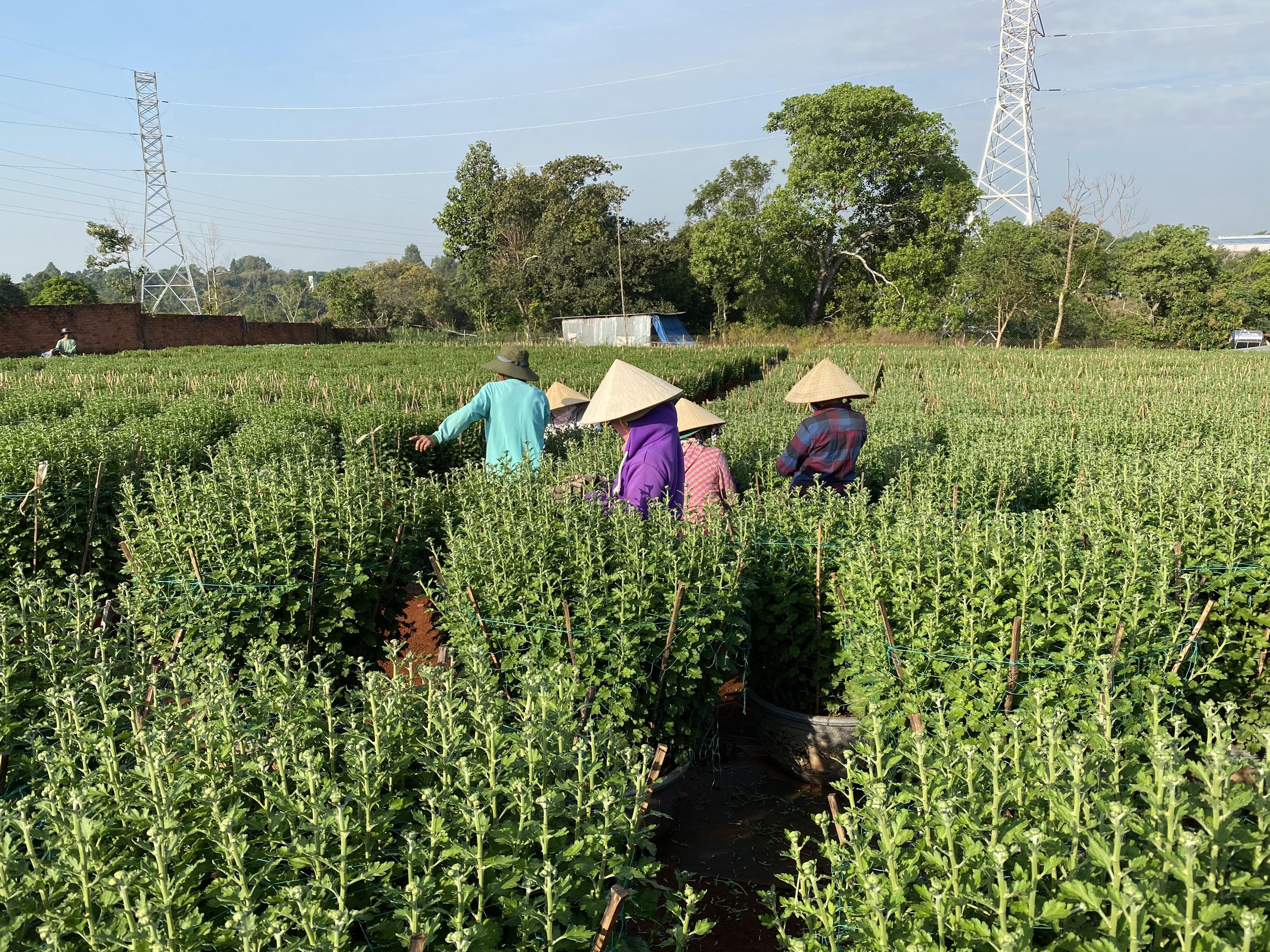 “Năm vừa rồi thời tiết chuyển biến thất thường, cuối năm trở lạnh đột ngột lại mang theo sương muối khiến cây bị sâu bệnh từ bên trong… nhà tôi vì thế cuối vụ lỗ hơn 20 triệu đồng. Năm nay quyết tâm chăm bón, hy vọng trời thương cho mưa thuận gió hòa, để 20.000 chậu cúc vàng nở đúng dịp và được thương lái mua với giá cao” - Chủ vườn hoa Tân Tiến, thị trấn Ngãi Giao, huyện Châu Đức, tỉnh Bà Rịa Vũng Tàu cho biết.
