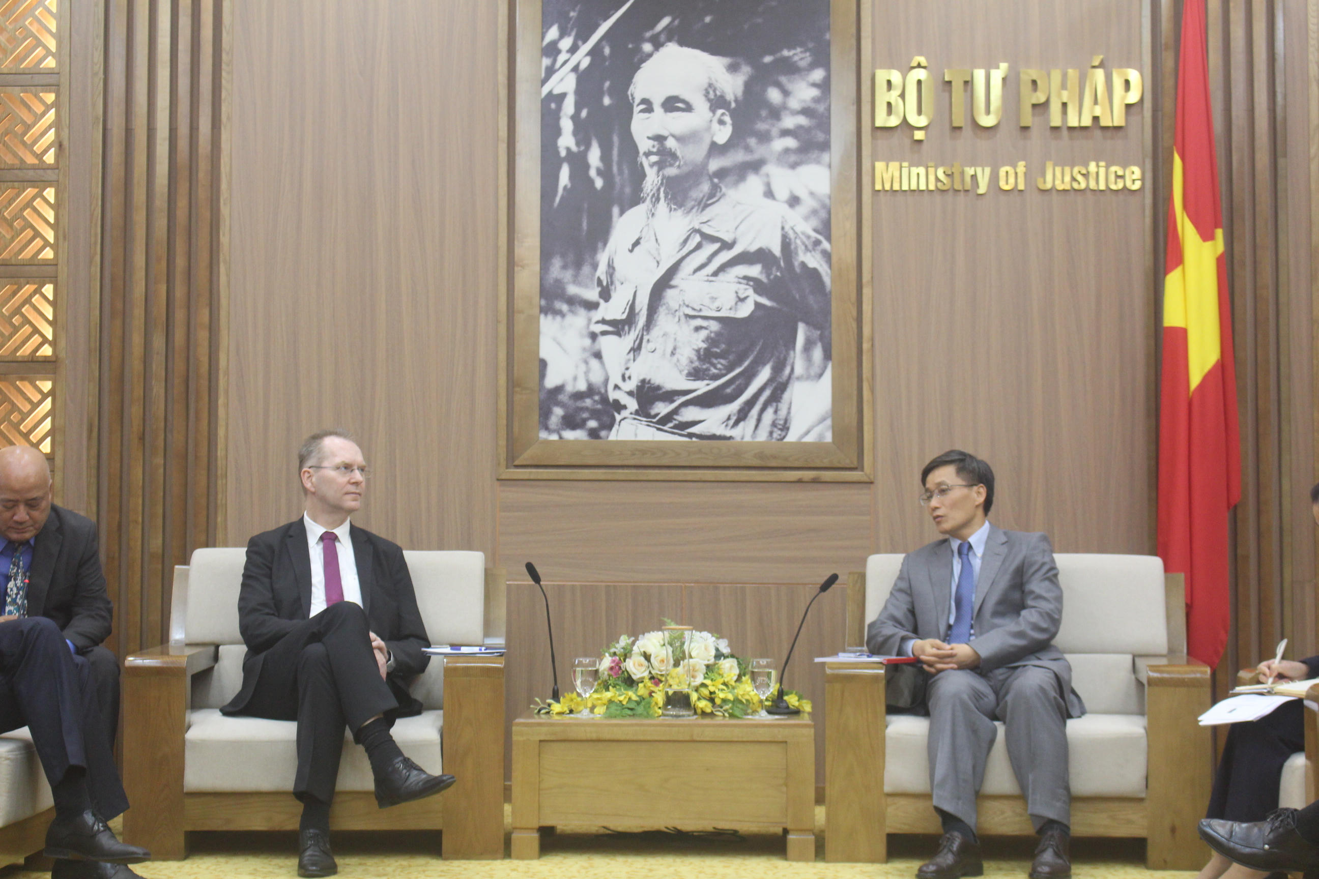 Ông Peter cũng trao đổi một số định hướng hợp tác liên quan đến đối thoại Nhà nước pháp quyền, vai trò của Tòa án và cam kết sẽ quan tâm đến những đề xuất của Việt Nam về hoàn thiện khung khổ pháp luật hành chính, tháo gỡ khó khăn trong thi hành án hành chính…