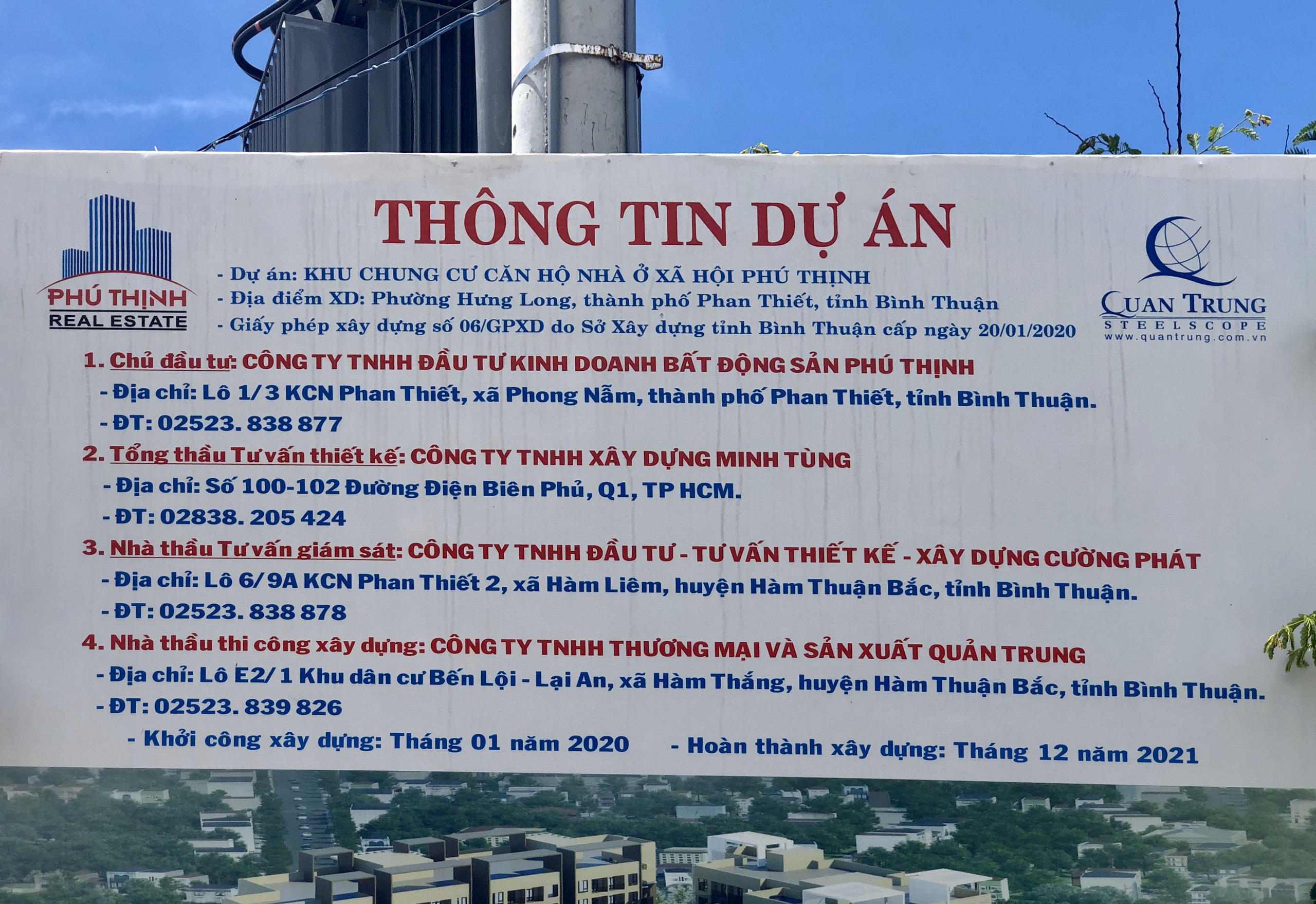Ông Cao Sơn Dũng,Phó Giám đốc Sở Xây dựng tỉnh Bình Thuận xác nhận với phóng viên Báo Pháp luật Việt Nam rằng "dự án Khu chung cư căn hộ nhà ở xã hội Phú Thịnh" hiện tại chưa hoàn tất hồ sơ để mở bán.