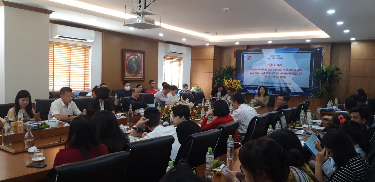 Hội thảo Nâng cao năng lực cho đội ngũ giảng viên đào tạo luật sư phục vụ hội nhập quốc tế tại TPHCM là diễn đàn để các đại biểu trao đổi, tìm kiếm các giải pháp tiếp tục nâng cao hơn nữa chất lượng đào tạo luật sư phục vụ hội nhập quốc tế tại Học viện Tư pháp.