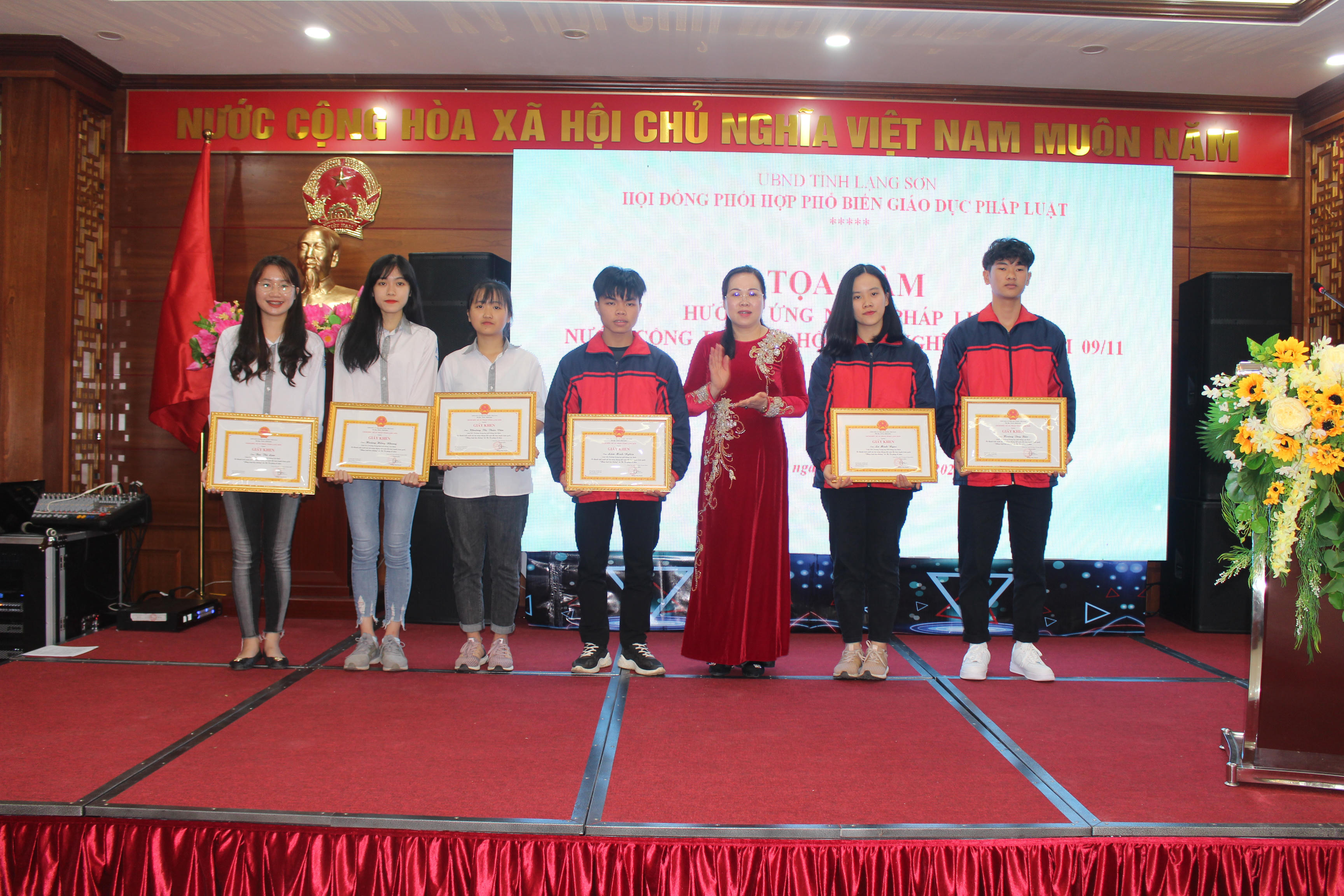 Tại tọa đàm, 06 học sinh trường THPT Lộc Bình đã được tặng Giấy khen của Giám đốc Sở Tư pháp vì đã vào đến vòng thi chung kết cuộc thi trực tuyến “pháp luật học đường” trên toàn quốc đã diễn ra từ 08/11/2019 đến ngày 07/6/2020. Trong đó, Lạng Sơn có 2 thí sinh đoạt giải khuyến khích. Đây là phần thưởng xứng đáng, và kịp thời để động viên các em đoạt giải. Bên cạnh đó cũng đẩy mạnh hơn nữa phong trào học tập và tìm hiểu pháp luật trong các em học sinh.