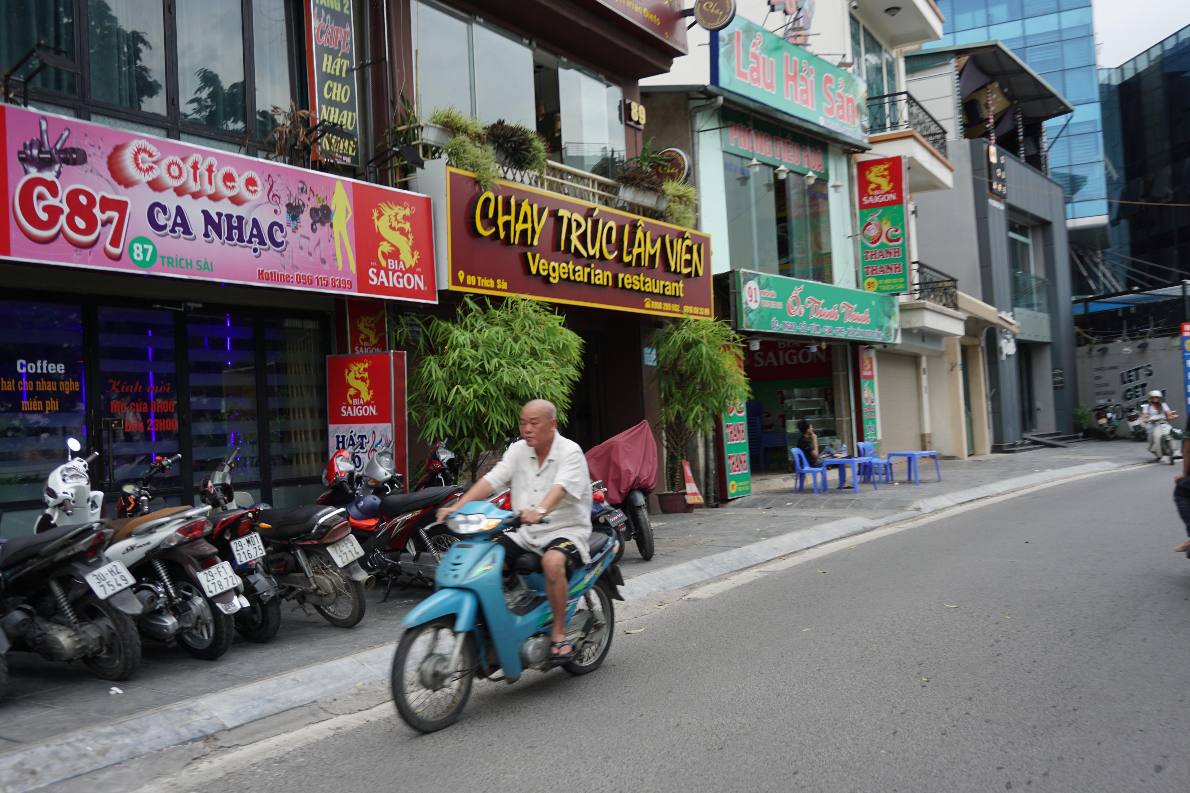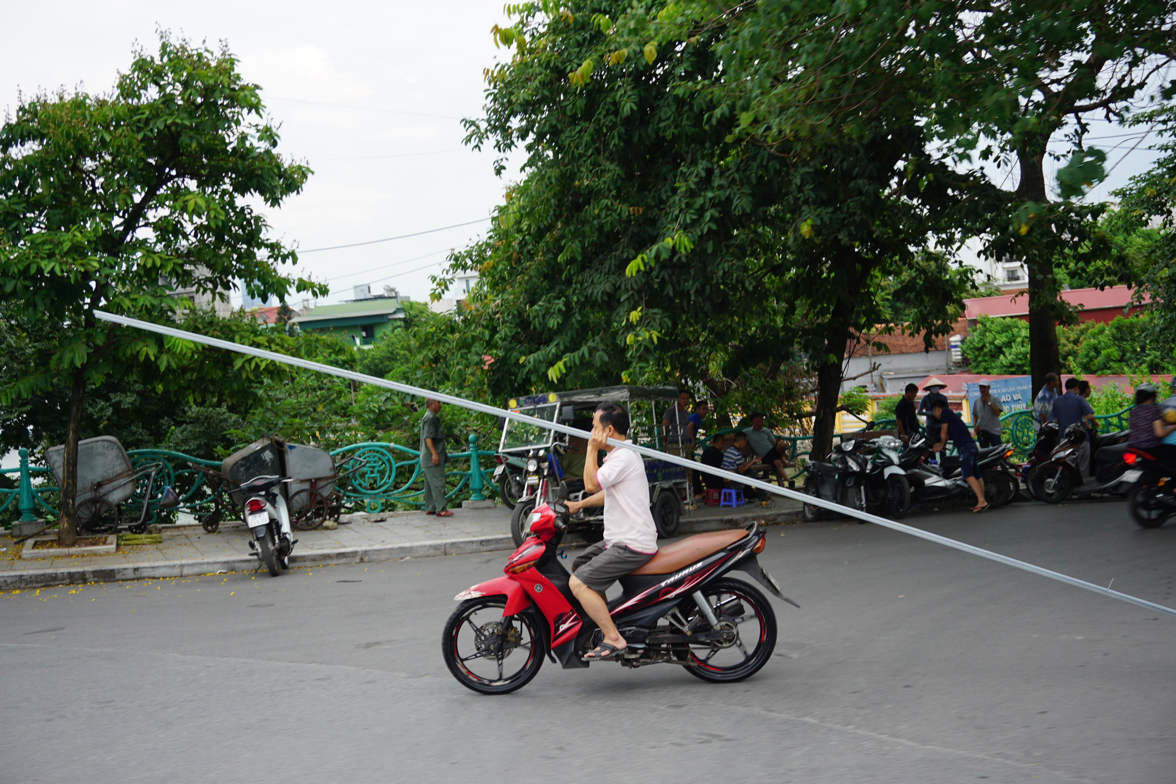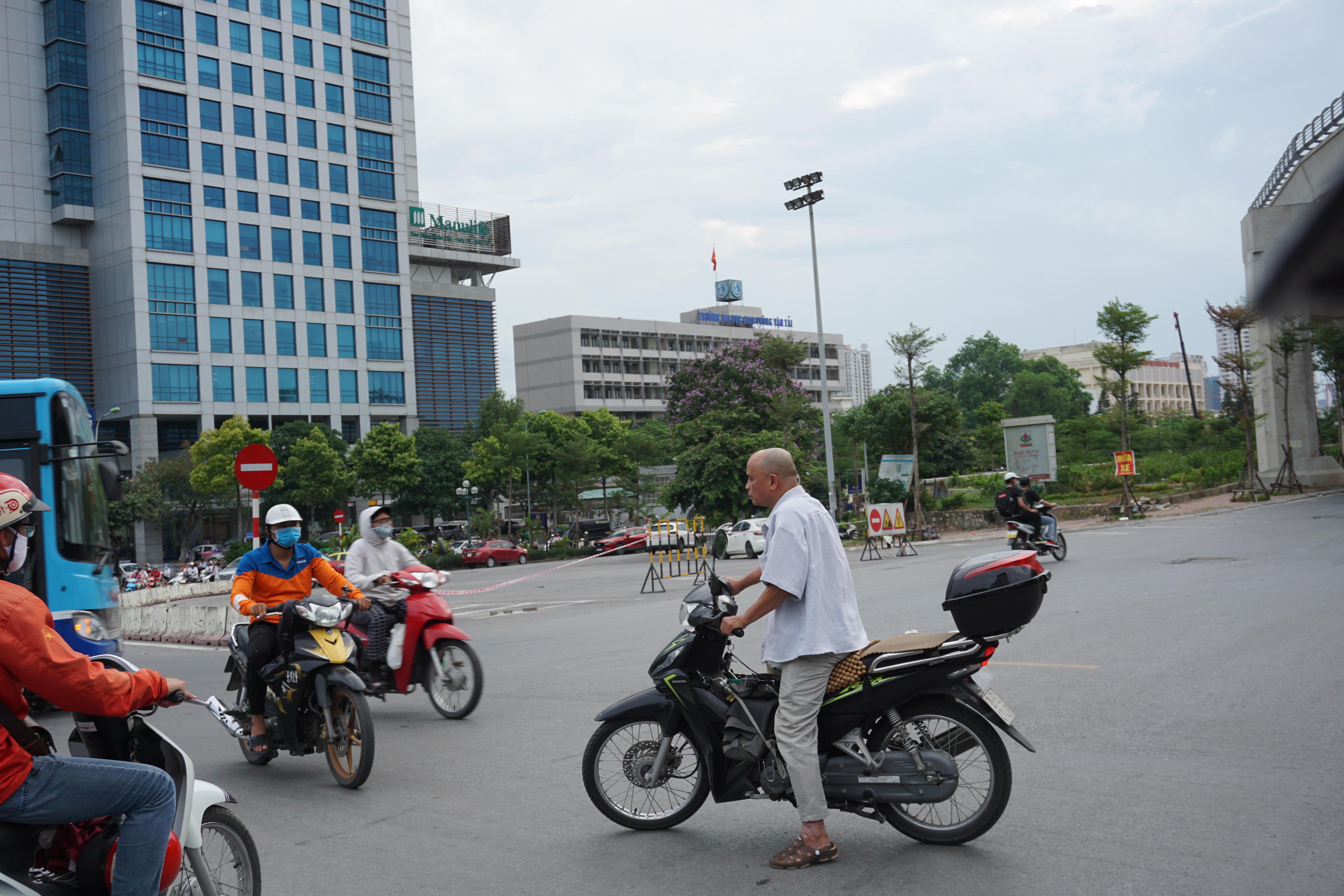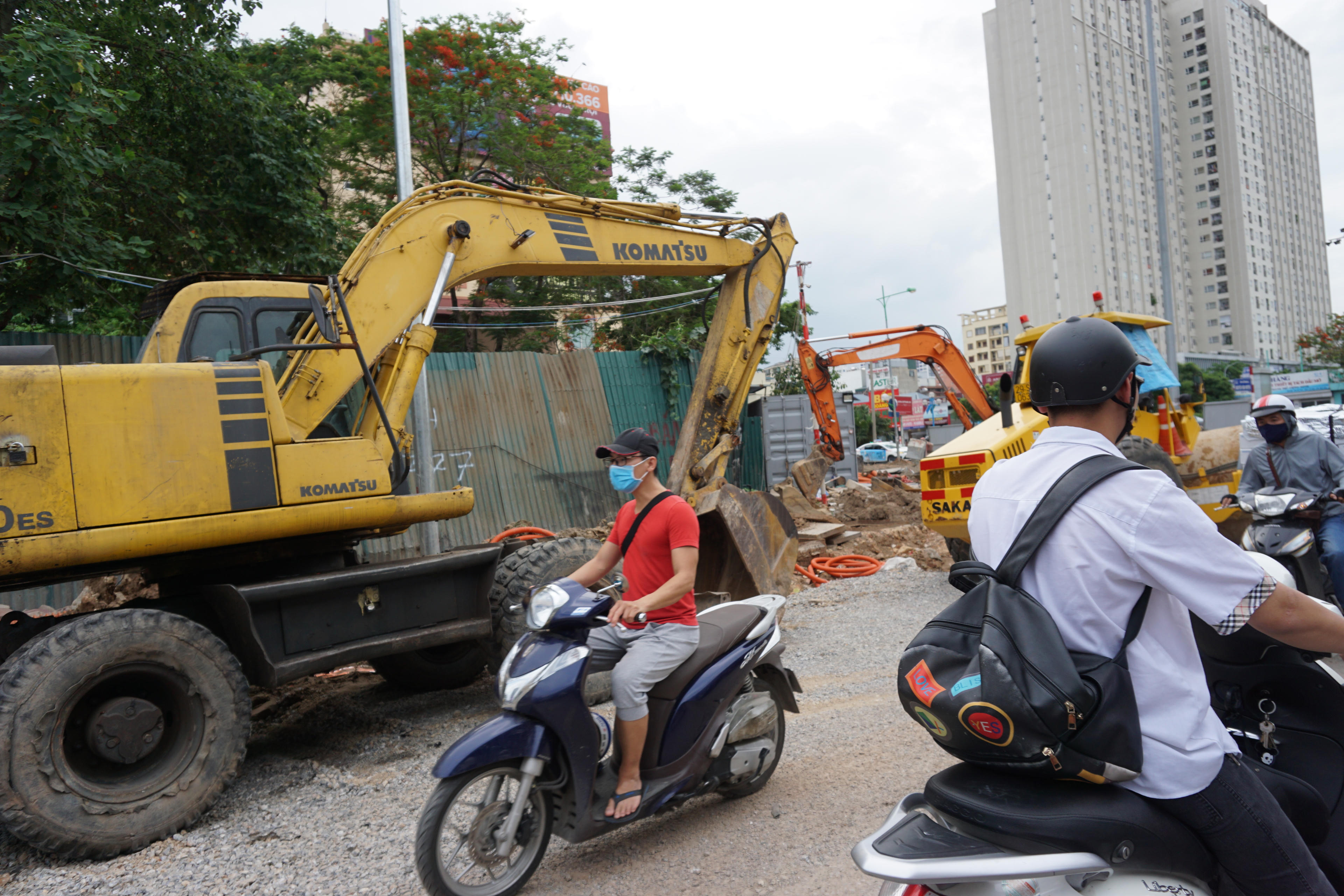 Trường hợp không đội mũ bảo hiểm trên đường Nguyễn Văn Huyên kéo dài, nơi có nhiều công trường đang thi công