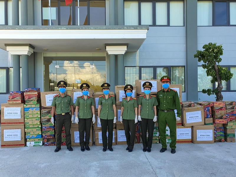 Cụ thể, Đoàn thanh niên, Hội phụ nữ và Công đoàn Công an tỉnh đã gửi tặng cho bệnh viện 199 (TP Đà Nẵng) 500 áo bảo hộ, 12.500 khẩu trang y tế, 50 thùng mì tôm, 30 thùng sữa, 8 thùng bánh với tổng số tiền là 120 triệu đồng. Những phần quà này được trích từ nguồn kinh phí do nhiều nhà hảo tâm quyên góp, ủng hộ.