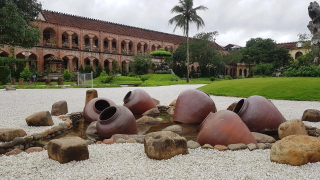 Ngoài thánh đường Châu Sơn với đỉnh cao nghệ thuật kiến trúc, Đan viên còn hút hồn du khách bởi khuôn viên rộng với nhiều tiểu cảnh tuyệt đẹp, khung cảnh yên tĩnh, thanh bình. Men dưới bóng râm của bức tường gạch đỏ trăm năm tuổi hay những tàng cây cổ thụ xanh um là lối sỏi trắng cũ kỹ nằm im lìm giữa hai bên thảm cỏ xanh mướt điểm xuyết vô vàn nhưng bông hoa li ti của các loài kỳ hoa dị thảo…