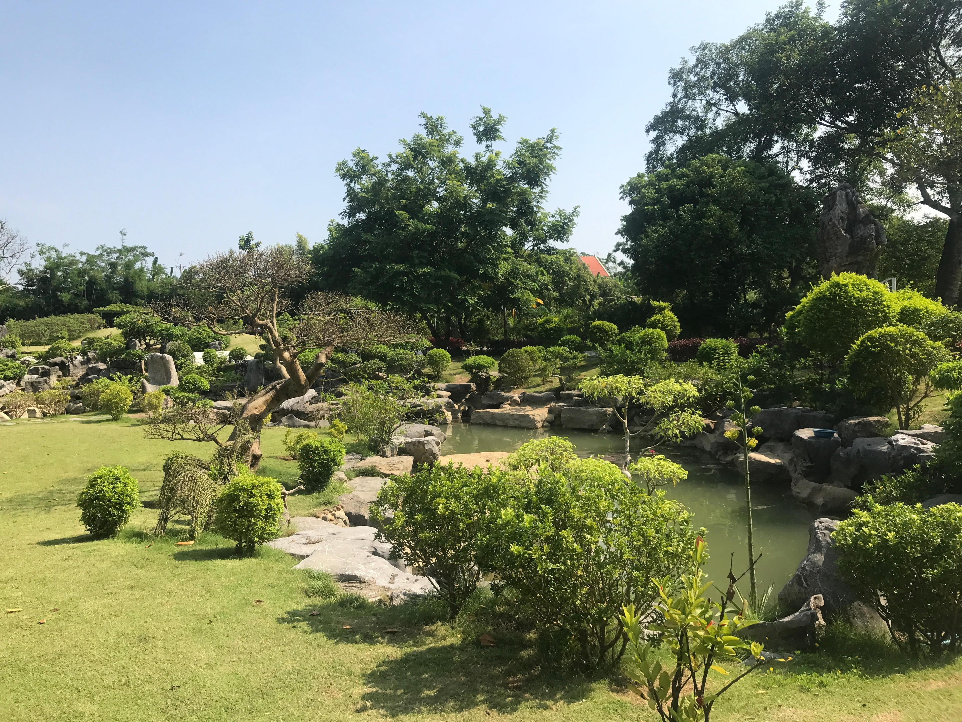 Vườn cầu nguyện trong khuôn viên tòa thánh với các tiểu cảnh: vườn tượng thánh, hồ nước, khu vườn chum với những chiếc chum khổng lồ nằm la liệt, khu vườn đá bạch ngọc (những viên đá trắng tinh như quả trứng khổng lồ nên còn được gọi là vườn trứng)… Tất cả đều cực kỳ ấn tượng và khác biệt, không giống bất kỳ khuôn viên một tòa thánh nào nhưng lại có nét chung là đều hướng đến sự tĩnh lặng, thanh bình.