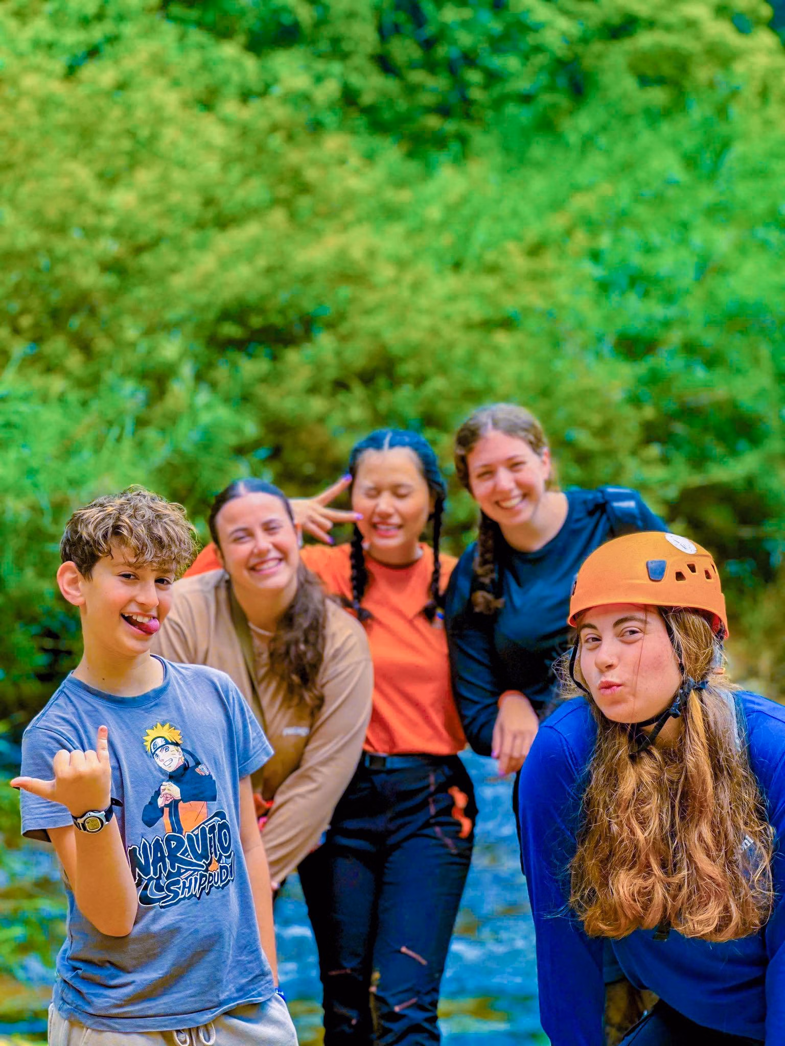 Một nữ hướng dẫn viên (giữa) tạo dáng chụp hình cùng du khách tham gia tour mạo hiểm hang động tại Phong Nha - Kẻ Bàng. Ảnh: Jungle Boss