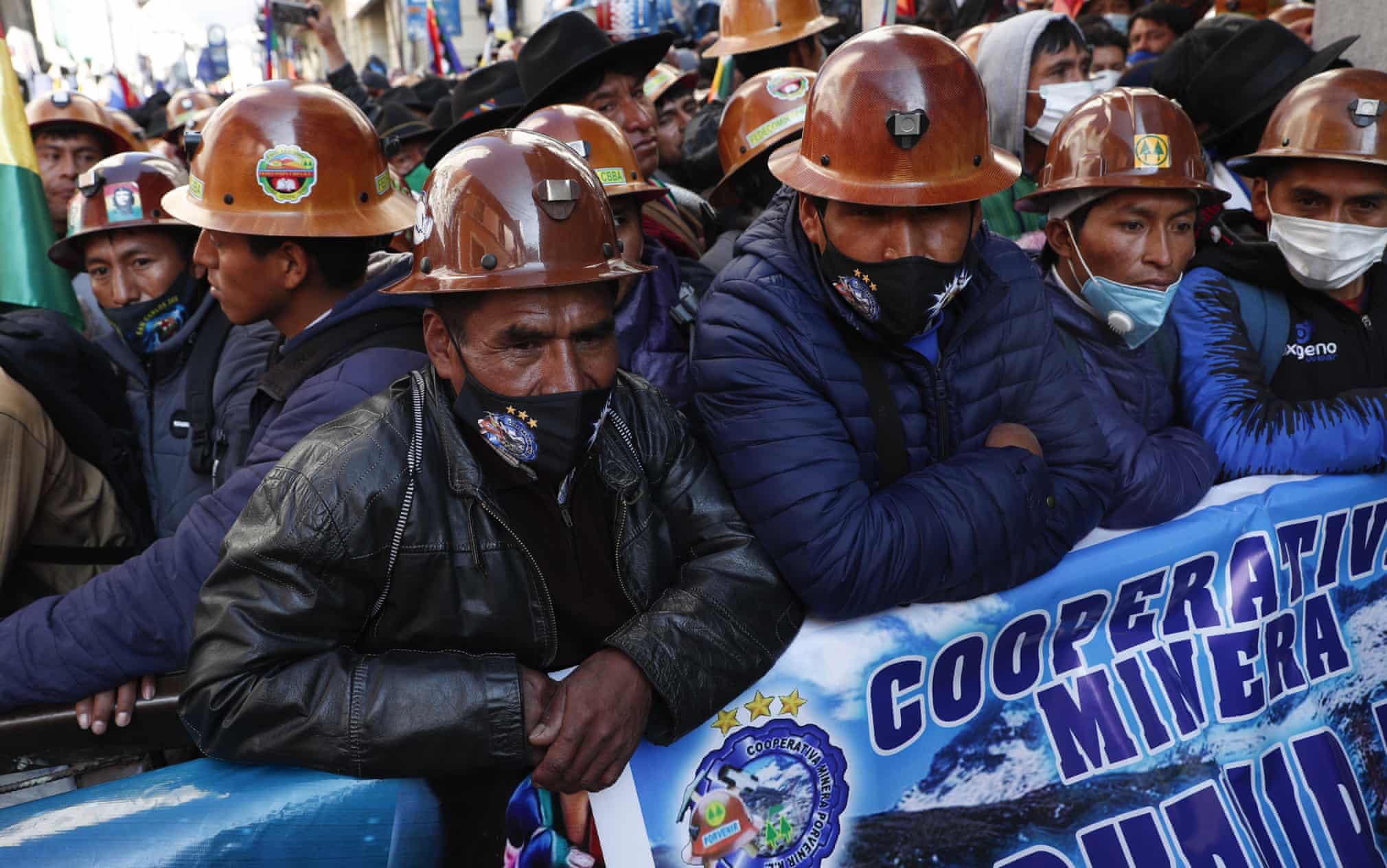 Thợ mỏ đợi bên ngoài Quốc hội để chờ tổng thống đắc cử - Luis Arce -tuyên thệ nhậm chức.