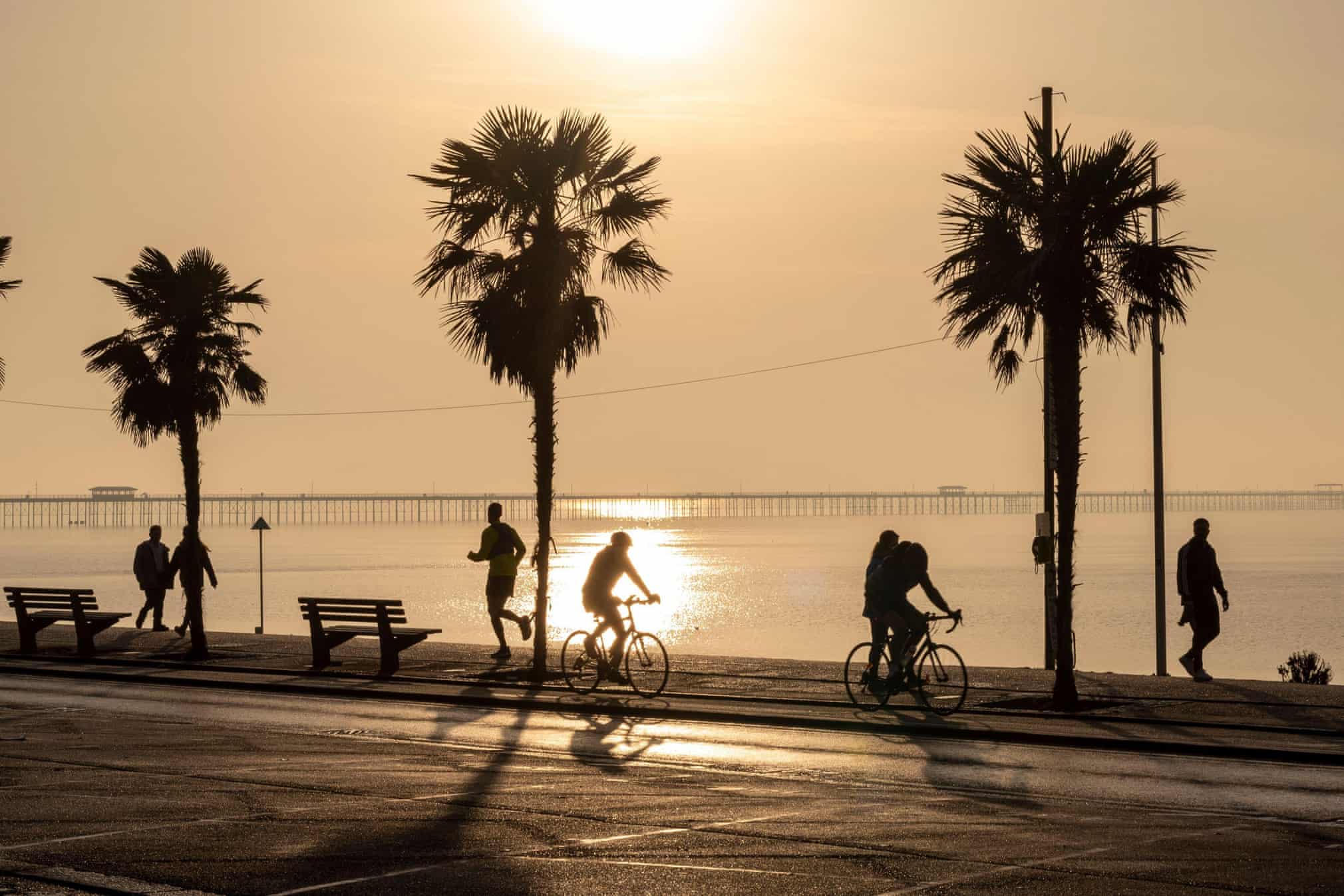Mọi người tập thể dục trên bờ biển trong đợt cách ly thứ hai do Covid-19 ở Anh.