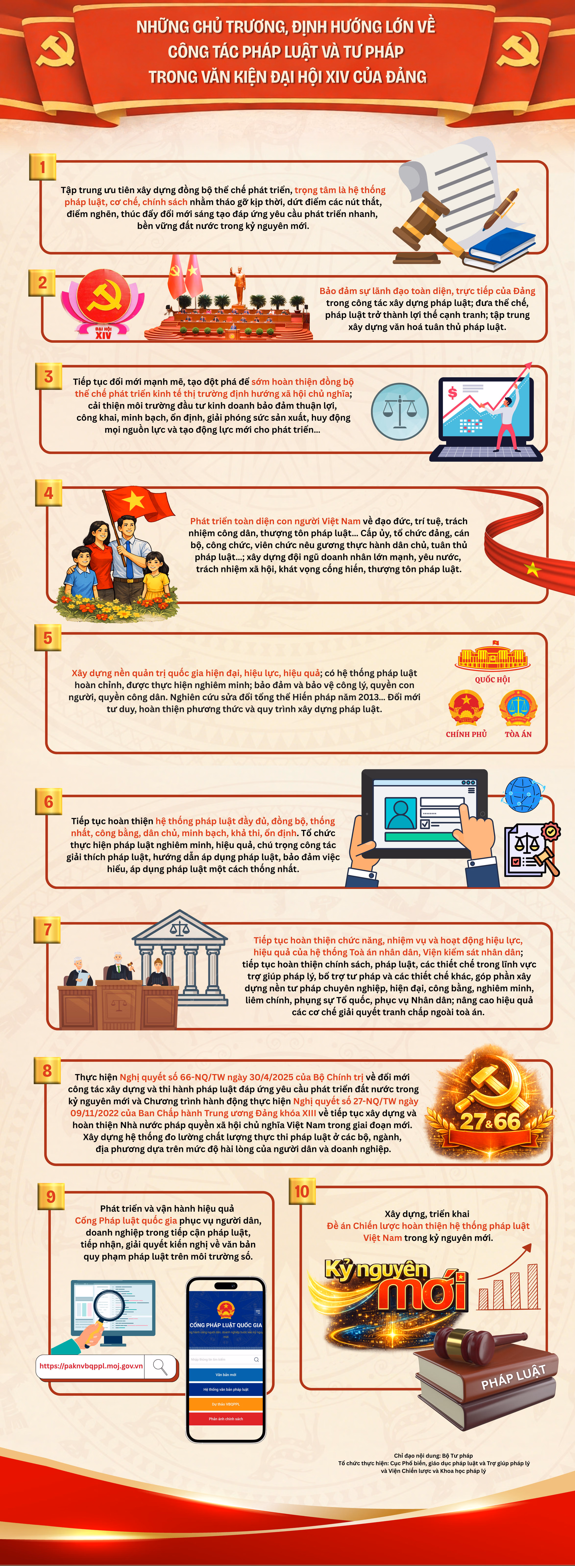 Những chủ trương, định hướng lớn về công tác Pháp luật và Tư pháp trong Văn kiện Đại Hội XIV của Đảng Chủ Nhật 22/02/2026 14:47 (GMT+7) PLVN