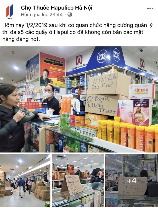 Tại nhiều cửa hàng thuốc tây, cửa hàng tiện dụng, giá khẩu trang y tế loại thông thường 35 ngàn/ hộp thời điểm bình thường, nay được bán với giá 70- 150 ngàn/ hộp, thậm chí cao hơn. Nước rửa tay và các loại khẩu trang khác bán tại các cửa hàng tiện dụng cũng tăng gấp đôi, gấp 3 lần.