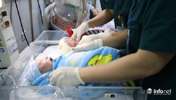 Đích thân PGS.TS.GVCC Trần Danh Cường, Giám đốc Bệnh viện đã cắt dây rốn cho các bé. Ông cho biết đã có 04 bé ra đời vào đúng thời khắc giao thừa.