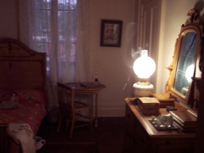 Khoảng 2h30 sáng, họ nhìn thấy bóng người hoặc thứ gì đó bước từ phòng đọc sách sang phòng nhạc. Regis đã nói với phóng viên: “Có thứ gì đấy màu trắng nhạt, giống như ma hiện hình và tôi thấy vô cùng phấn khích, tôi không thể kìm lòng! Tôi đã bật đèn lên nhưng chẳng thấy gì ngoài bức chân dung Anna Whaley”. Vài năm sau, một nhóm du khách được dẫn lên các căn phòng trên tầng hai ngôi nhà. Họ bỗng nghe thấy tiếng đàn piano phát ra từ tầng dưới.
