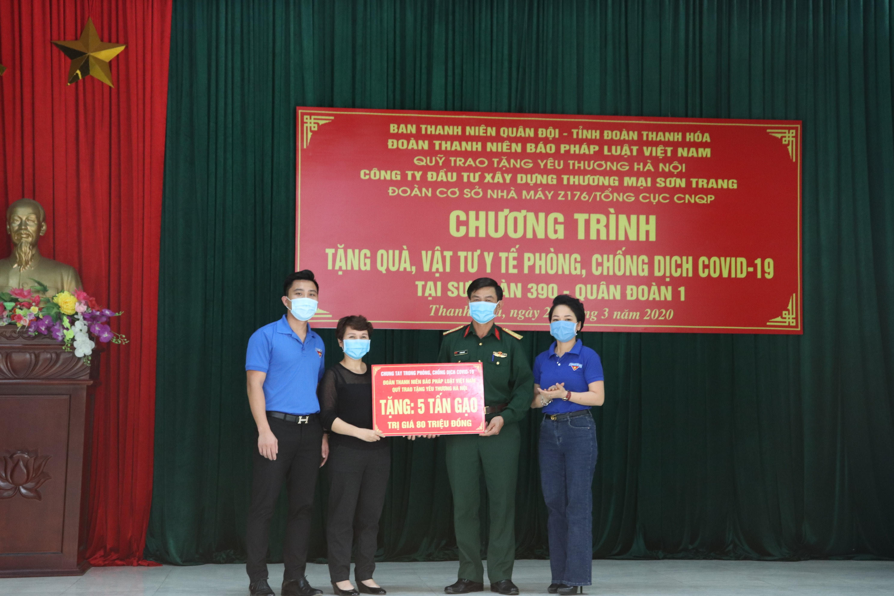 Đoàn Thanh niên Báo Pháp luật Việt Nam đã phối hợp với Quỹ Trao tặng yêu thương và Ban thanh niên Quân đội tổ chức Chương trình tặng quà, vật tư y tế phòng, chống dịch Covid-19 tại Sư đoàn 390 – Quân đoàn 1 đóng tại TX Bỉm Sơn (Thanh Hóa)