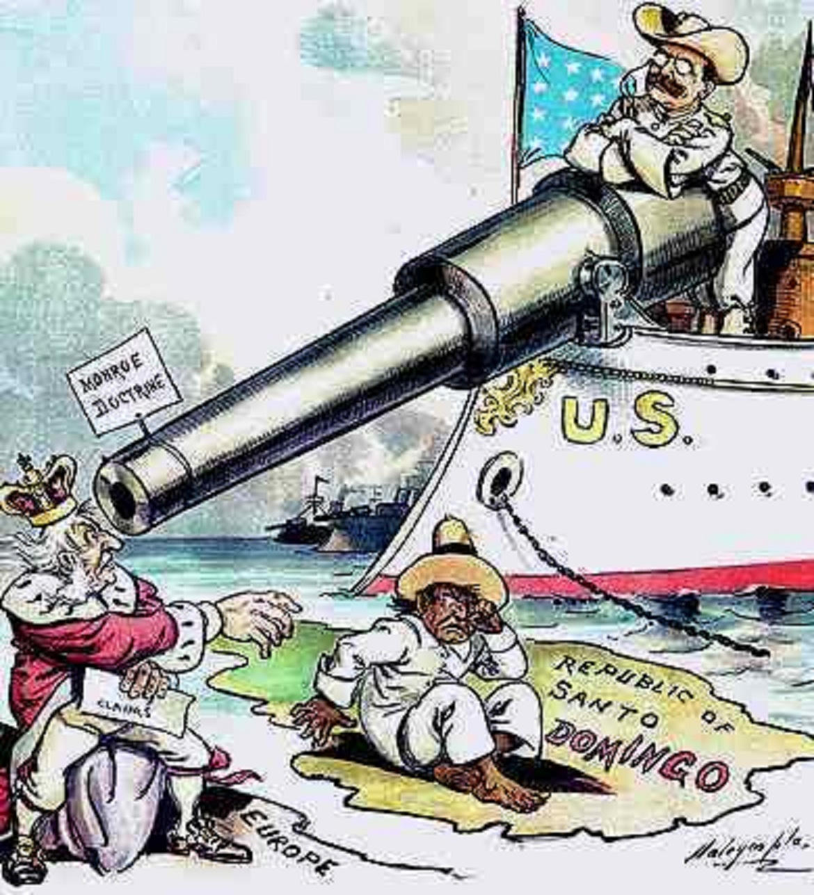 Đến năm 1898, trận chiến Tây Ban Nha - Mỹ đã đánh dấu bước ngoặt trong lịch sử can thiệp vào khu vực Mỹ Latin của nước Mỹ. Sau trận chiến này, Tây Ban Nha phải từ bỏ thuộc địa là Cuba và nhượng lại Puerto Rico, Guam cho Mỹ thay cho các đền bù thiệt hại do chiến tranh cũng như phải nhượng lại cho Mỹ quần đảo Phillipines để đổi lấy 20 triệu USD.