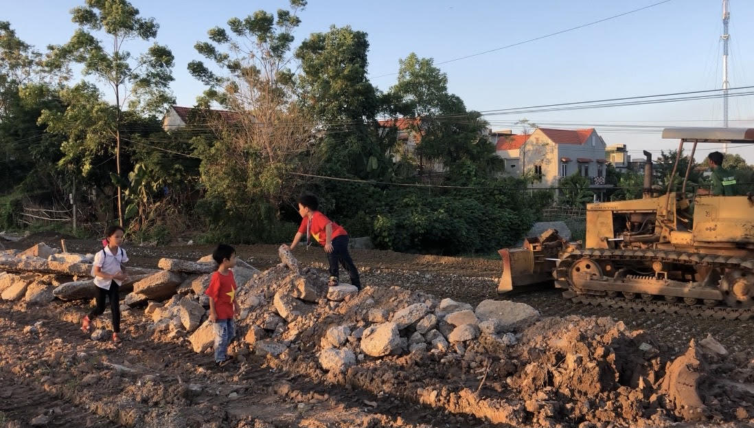 Có mặt tại công trình đang thi công tuyến đường thuộc xã Khánh Nhạc chiều ngày 20/11, phóng viên ghi nhận vào thời điểm này, rất nhiều người dân đi lại và học sinh tan trường đi qua.