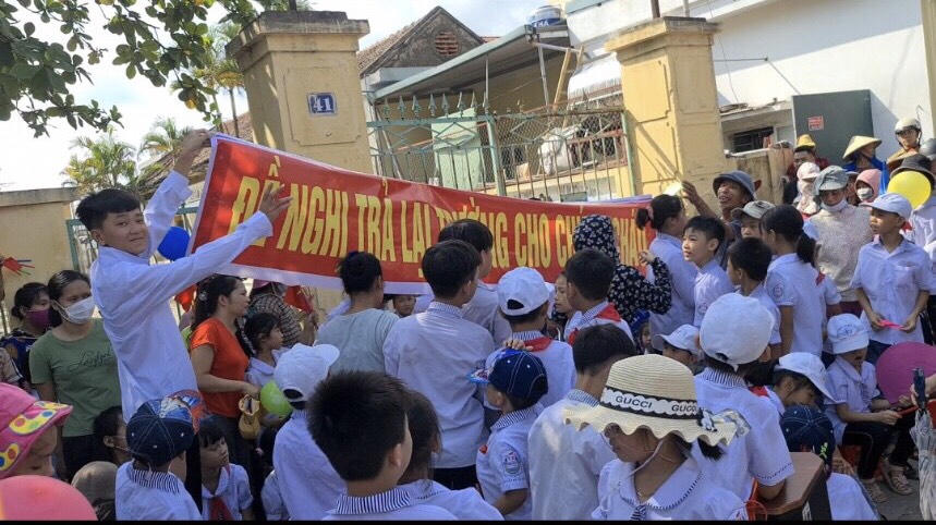 Trong khi cả nước đang tổ chức lễ khai giảng năm học mới, thì phụ huynh và các em học sinh trường Tiểu học Kim Đồng lại phải “đấu tranh” để lấy lại nơi học tập. |