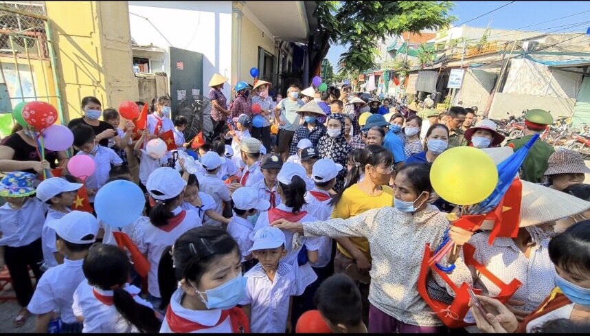 | Hàng trăm các em học sinh đến trường Tiểu học Kim Đồng để khai giảng nhưng trường đã được chuyển đi nơi khác. |