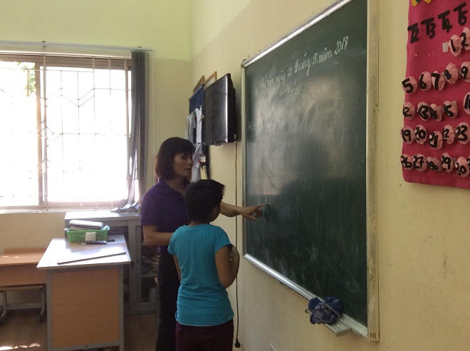 “Ở Trung tâm có 5 nhóm trẻ khuyết tật, đó là khuyết tật trí tuệ, tự kỷ, khuyết tật vận động, khiếm thính, nhóm trẻ mắc bệnh down. Hầu như tất cả các trẻ đến với Trung tâm đều ở dạng nặng. Em làm việc ở đây ngay từ ngày Trung tâm thành lập, đến nay cũng được 12 năm rồi. Em đã thử sức với tất cả các nhóm trẻ, công việc rất vất vả nhưng em cũng quen rồi. Với lại nhìn thấy sự tiến bộ của các con cũng vui lắm chị ạ” – cô Nguyễn Thị Hoan cho biết.