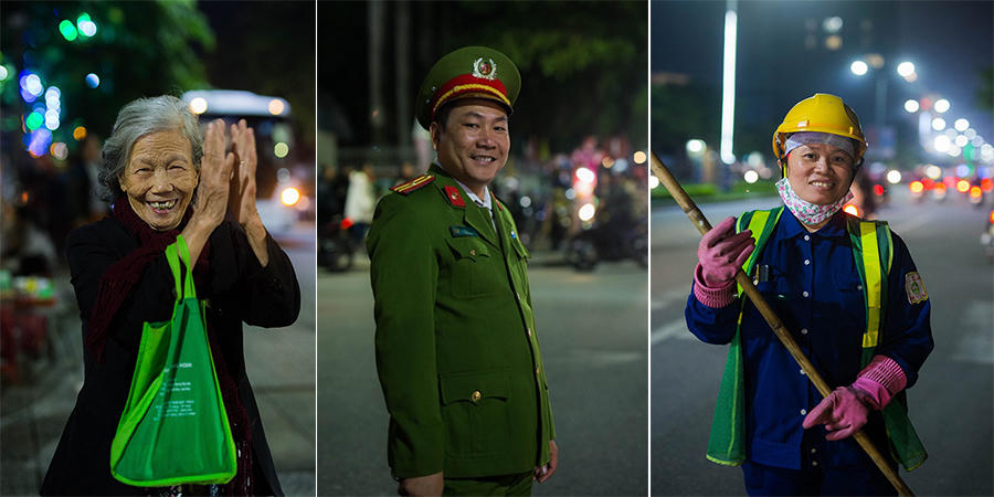 Nụ cười luôn nở trên môi của người hâm mộ xứ Huế, từ những cô lao công, những cụ già tới những chiến sĩ đang làm nhiệm vụ đảm bảo an toàn giao thông, an ninh trật tự cho người dân.