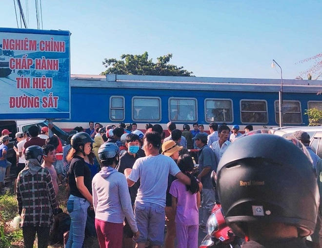 Ô tô chở khách va chạm tàu hỏa khiến nhiều người bị thương