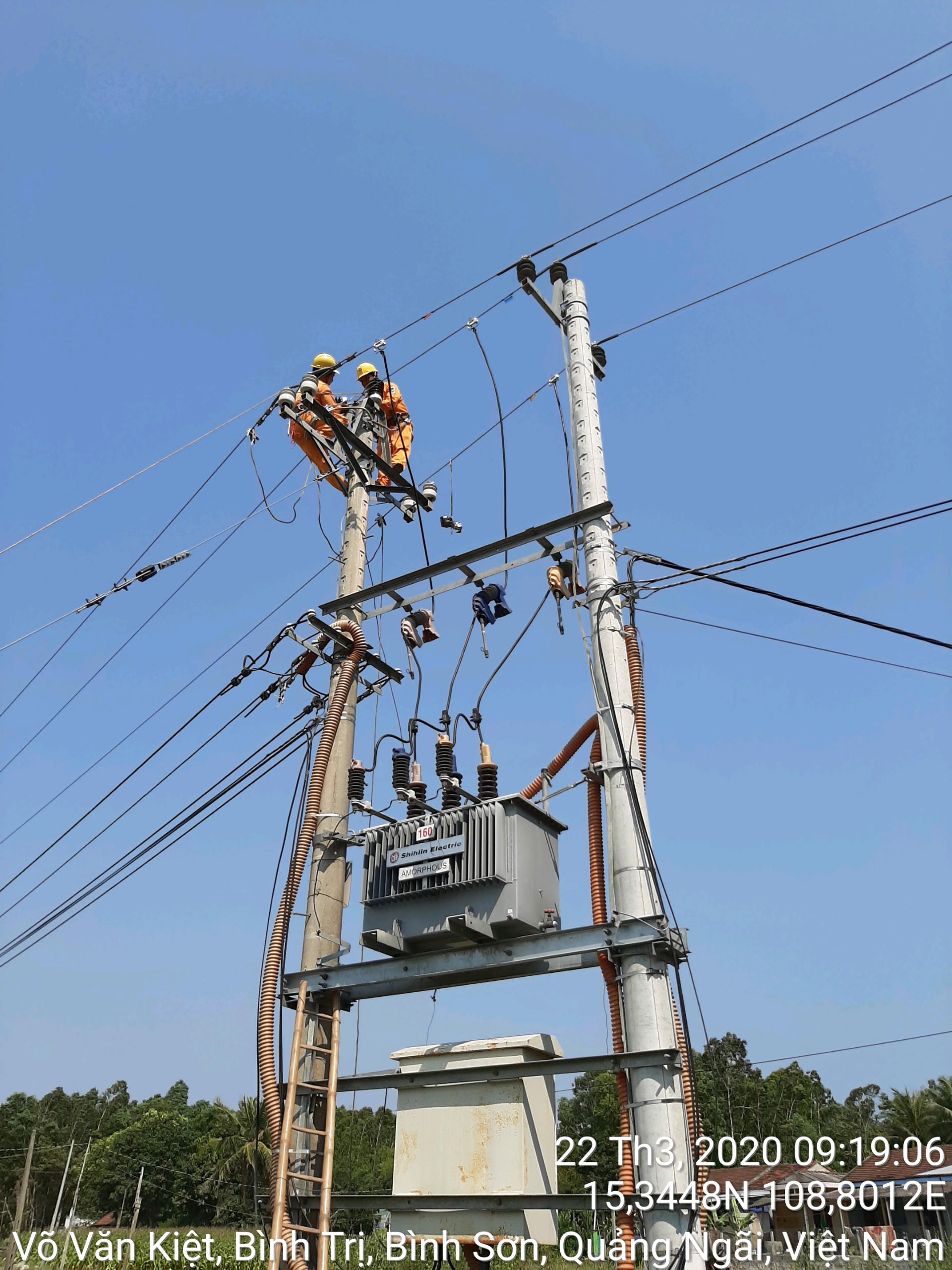 Cũng liên quan đến công tác trong ngành điện thuộc thành viên PC Quảng Ngãi, Điện lực Bình Sơn (ĐLBS) đã ra quân xử lý các điểm khiếm khuyết trên lưới điện tại xuất tuyến (XT) 472,474,476/BCH thuộc Trạm biến áp (TBA) 110kV Bình Chánh (BCH). Đợt xử lý này nhằm phòng ngừa sự cố trên lưới điện; qua đó góp phần nâng cao độ tin cậy cung cấp điện cho khách hàng trên địa bàn.