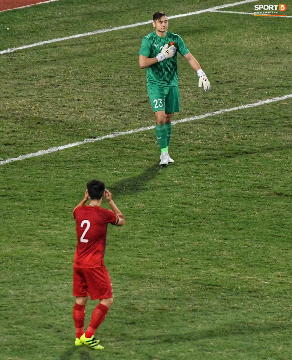 Anh chàng trước đó cũng nhắc nhở các đồng đội hãy bình tĩnh lại khi bị thổi penalty. Sự tỉnh táo và sự tự tin cùng tài năng của Văn Lâm đã giúp tuyển Việt Nam thoát khỏi 1 bàn thua.
