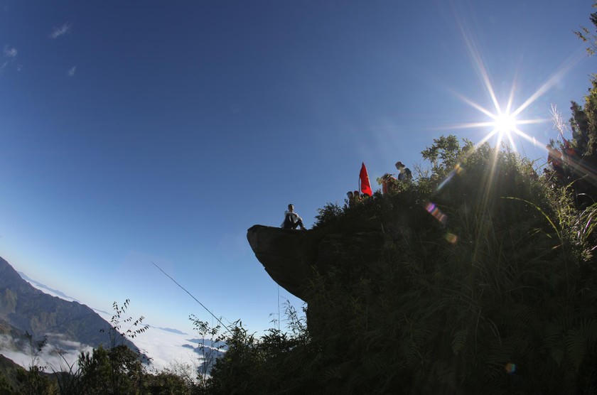 Leo lên đỉnh Đầu Rùa, phóng tầm mắt là bạt ngàn mây trắng, cảm giác như đang đứng ở chốn Bồng Lai tiên cảnh trong huyền thoại. |