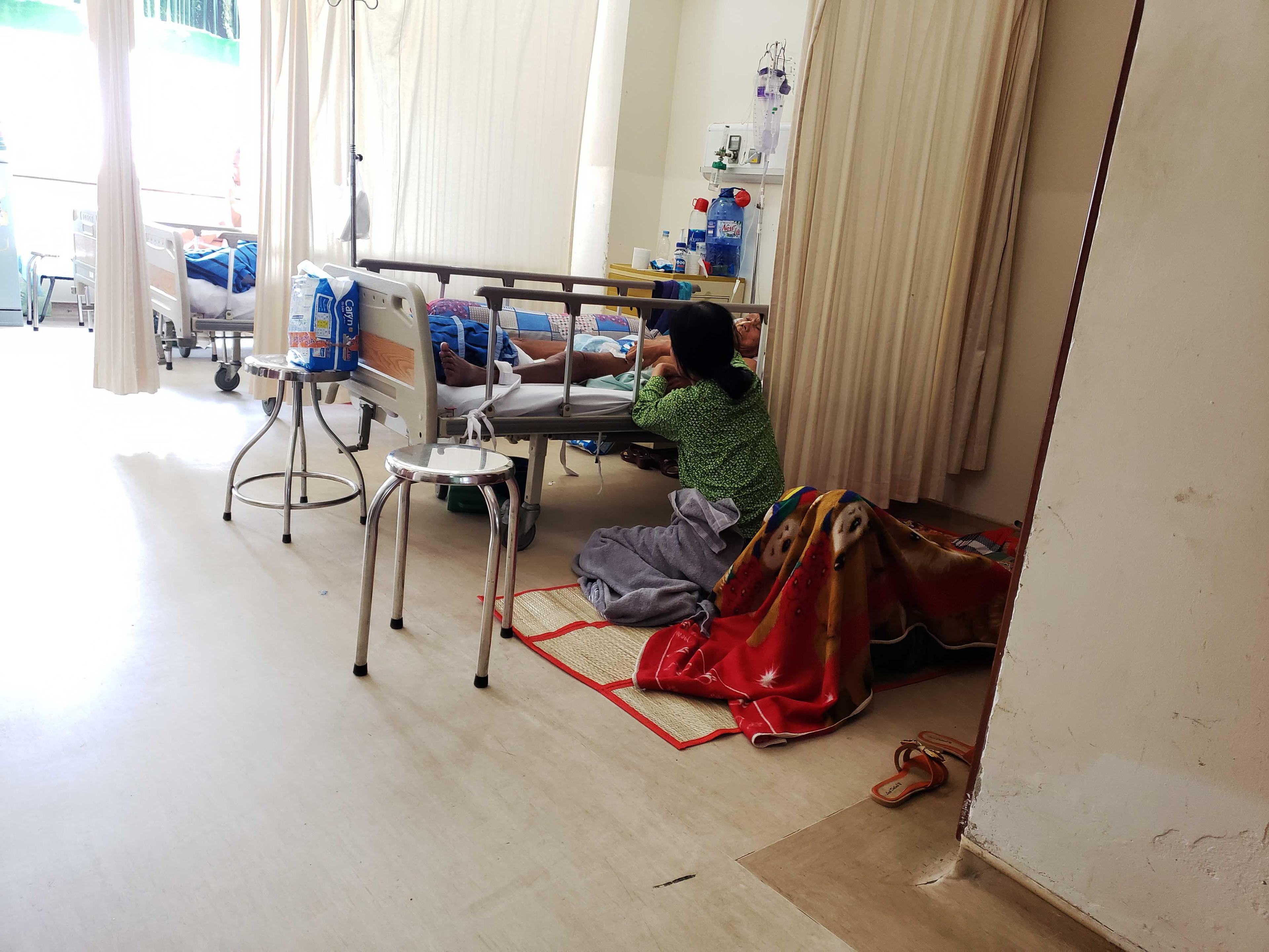 Ở bệnh viện, bệnh nhân không đủ chỗ mà nằm nói gì đến chỗ cho “ôsin”. Ngày ngồi vật vạ, đêm ngồi dựa hành lang hoặc rải chiếu dưới gầm giường bệnh nhân. Ngày vất vả, đêm chị cũng chỉ tranh thủ ngủ, sẵn sàng bật dậy khi bệnh nhân cần.