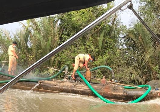 Theo thông tin, trước đó trong 2 ngày 7 và 8/4 lực lượng cán bộ chiến sĩ Phòng Cảnh sát giao thông đã phát hiện, bắt giữ 2 vụ bơm hút cát trái phép, tạm giữ 2 phương tiện bơm hút cát, 1 phương tiện vận chuyển và 2m3 tang vật.