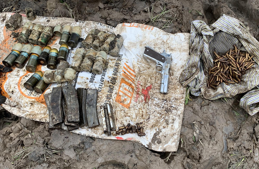 Qua kiểm tra, phát hiện có 1 khẩu súng ngắn Colt 45, 3 hộp tiếp đạn và 12 viên đạn Colt, 7 hộp tiếp đạn và 216 viên đạn Carbine, 26 quả đạn M79 (trong đó 10 quả còn nguyên vẹn, còn lại đã bị oxy hóa). Tất cả số súng, đạn trên được lực lượng công binh đưa về nơi an toàn chờ tiêu hủy.
