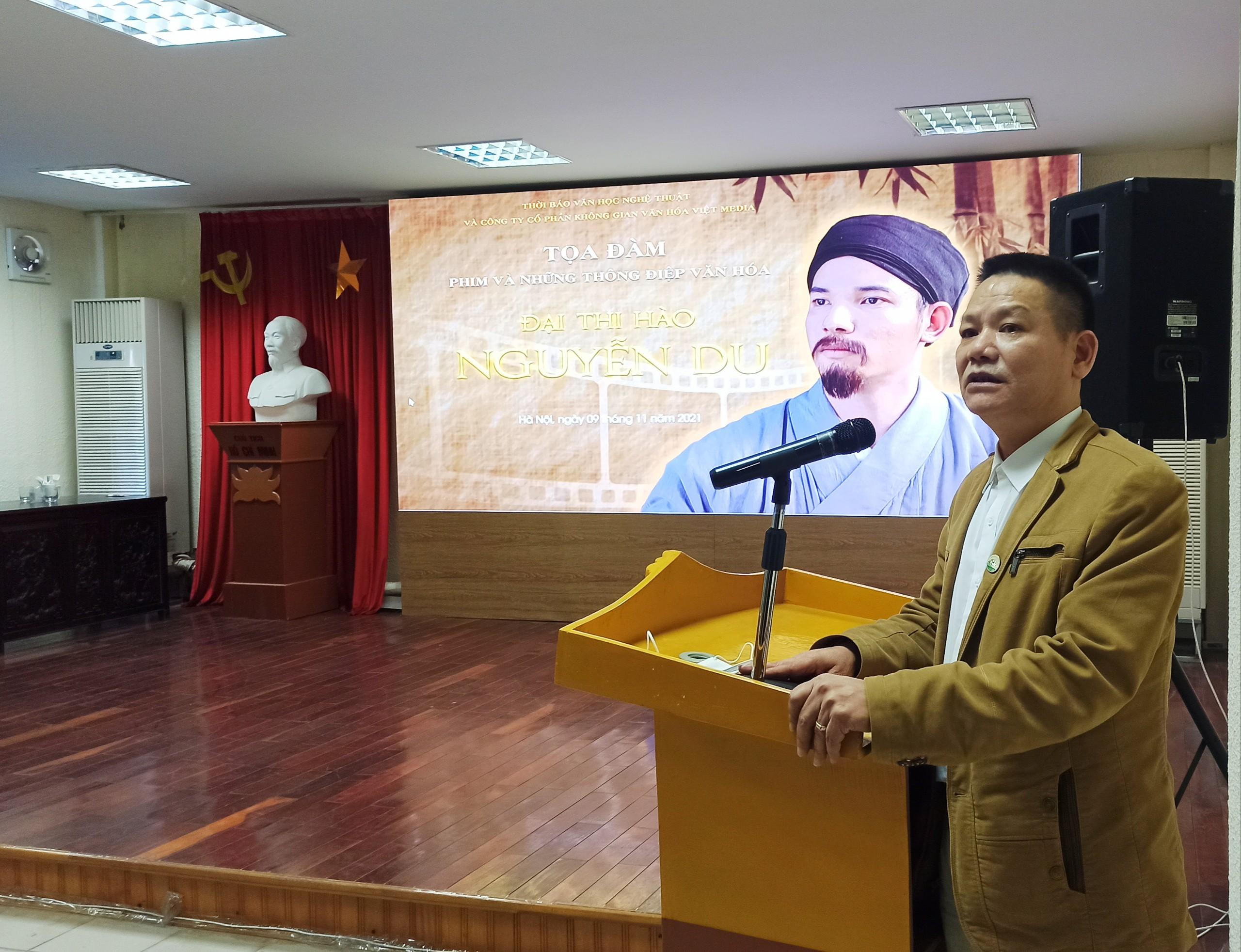 | TS. Phạm Xuân Mừng nhấn mạnh thông điệp mong muốn truyền tải văn hóa lịch sử dân tộc đến cộng đồng qua bộ phim tài liệu nghệ thuật "Đại thi hào Nguyễn Du" |