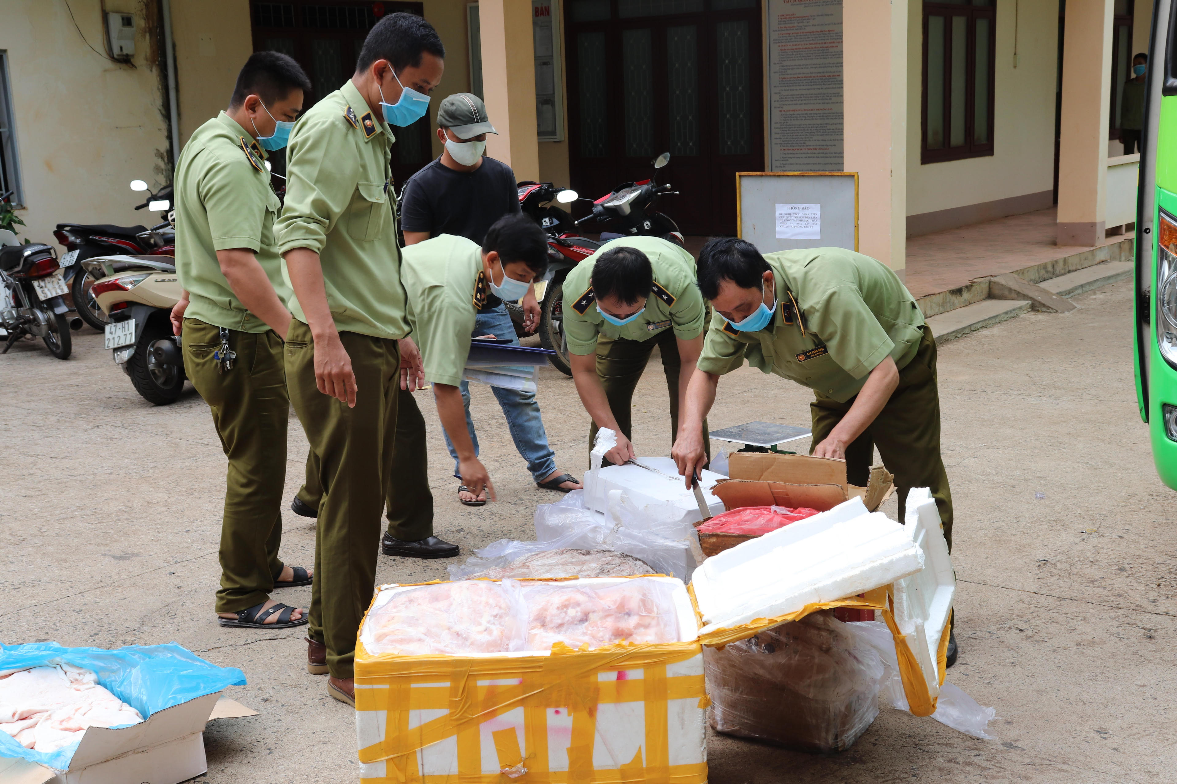Phát hiện xe khách vận chuyển gần 200kg sản phẩm động vật không rõ nguồn gốc