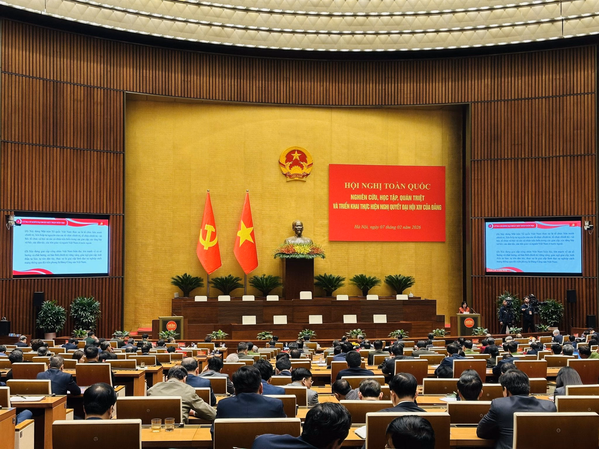 Sáng 7/2, tại Hội nghị toàn quốc nghiên cứu, học tập, quán triệt và triển khai thực hiện Nghị quyết Đại hội XIV của Đảng, đồng chí Bùi Thị Minh Hoài, Ủy viên Bộ Chính trị, Bí thư Trung ương Đảng, Bí thư Đảng ủy Mặt trận Tổ quốc, các đoàn thể Trung ương, Chủ tịch Ủy ban Trung ương Mặt trận Tổ quốc Việt Nam đã trình bày chuyên đề “Phát huy sức mạnh đại đoàn kết toàn dân tộc trong sự nghiệp xây dựng, phát triển đất nước và bảo vệ Tổ quốc trong kỷ nguyên mới”.