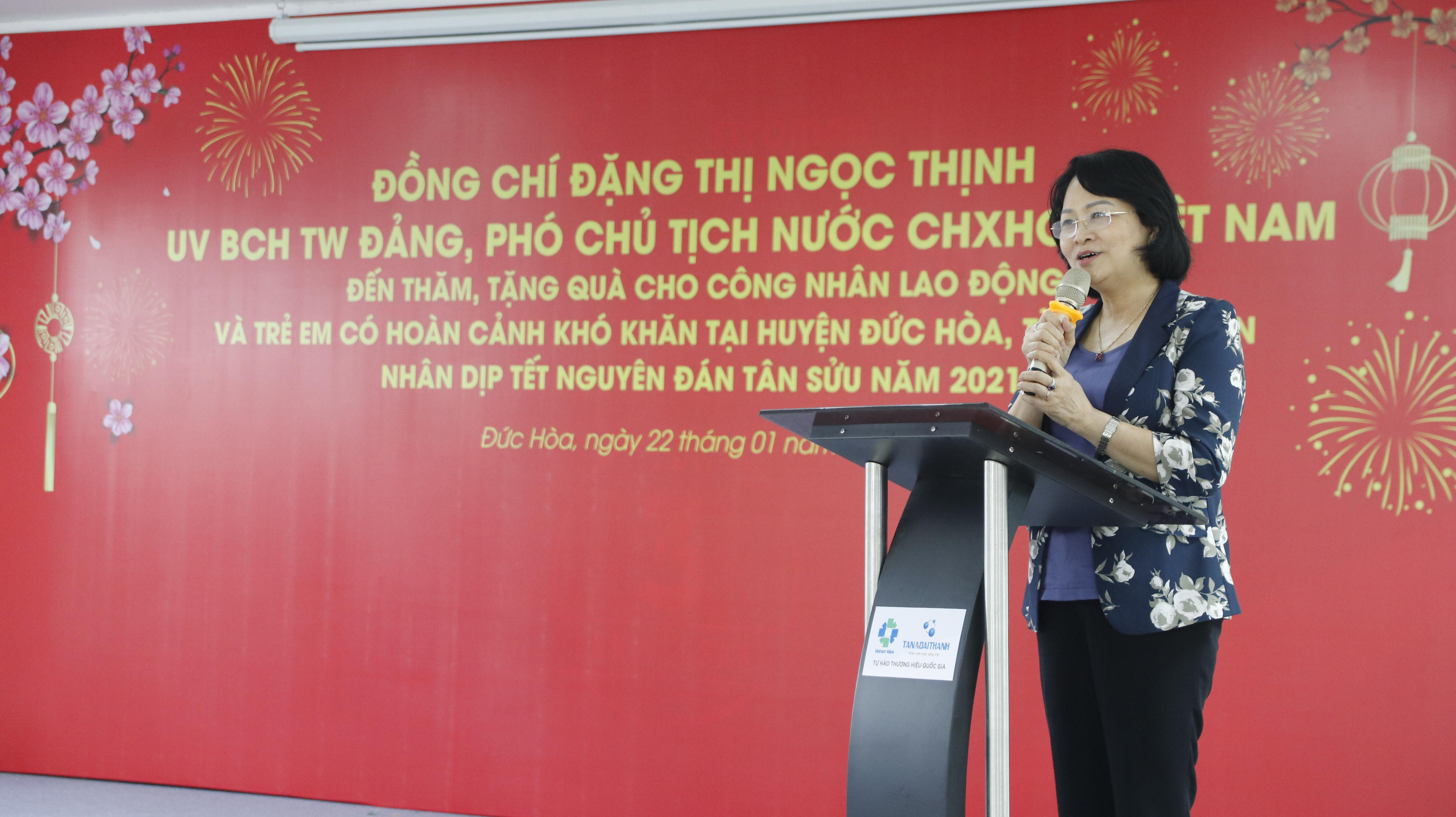 Phó Chủ tịch nước Đặng Thị Ngọc Thịnh cùng đoàn lãnh đạo trung ương và lãnh đạo tỉnh Long An đã tới thăm và tặng quà tết cho người lao động tại Tổ hợp nhà máy Tân Á Đại Thành Long An vào ngày 22/1.