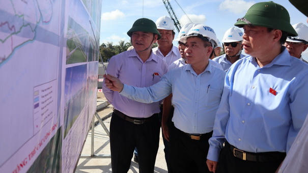 (PLVN) - Ngày 9/7, Đoàn công tác của Quốc hội do ông Phùng Quốc Hiển - Ủy viên Ban Chấp hành Trung ương Đảng, Phó Chủ tịch Quốc hội làm trưởng đoàn đến khảo sát công trình đang thi công của Dự án Hệ thống thủy lợi Cái Lớn - Cái Bé (giai đoạn 1) và làm việc với UBND tỉnh Kiên Giang.