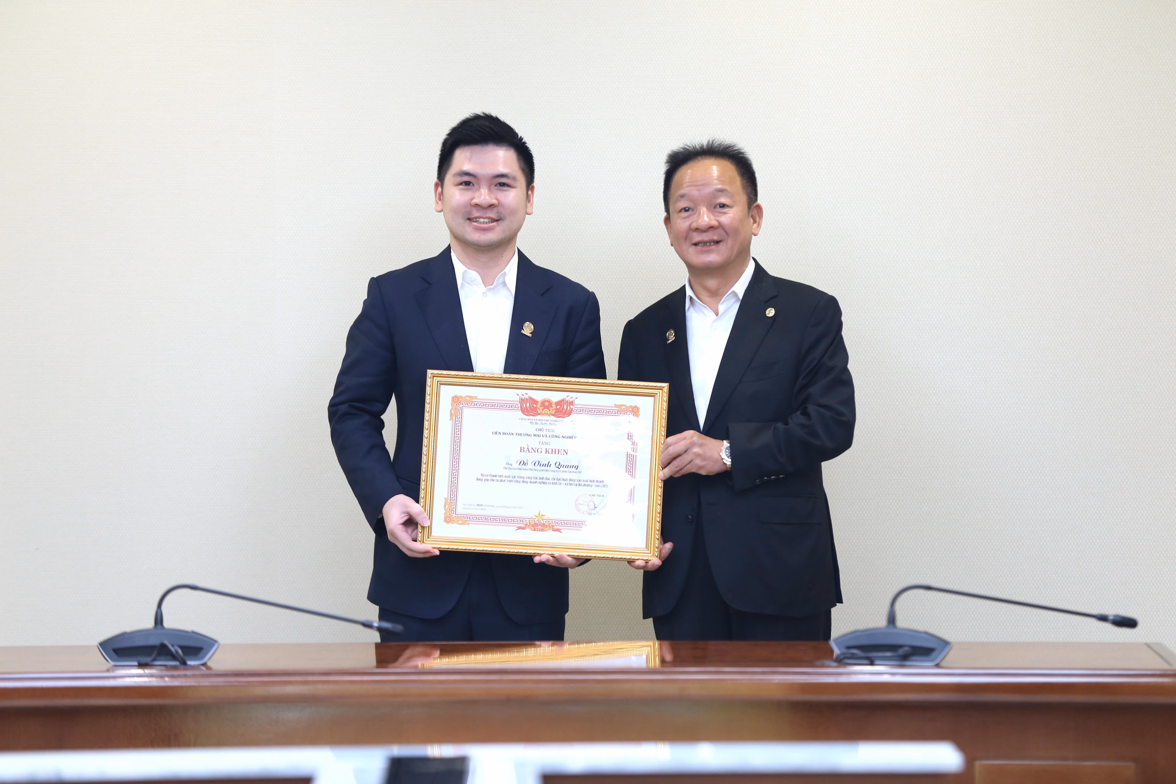 Cũng trong khuôn khổ Hội nghị, Liên đoàn Thương mại và Công nghiệp Việt Nam (VCCI) đã trao Bằng khen của Chủ tịch VCCI cho các tập thể và cá nhân có thành tích xuất sắc trong hoạt động sản xuất – kinh doanh, đóng góp tích cực cho cộng đồng doanh nghiệp và phát triển kinh tế – xã hội năm 2025. Theo đó, Tập đoàn T&T Group vinh dự là một trong những tập thể tiêu biểu được nhận Bằng khen nhằm ghi nhận những đóng góp nổi bật trong phát triển kinh tế đa ngành và đồng hành cùng cộng đồng doanh nghiệp, đặc biệt là doanh nghiệp nhỏ và vừa.