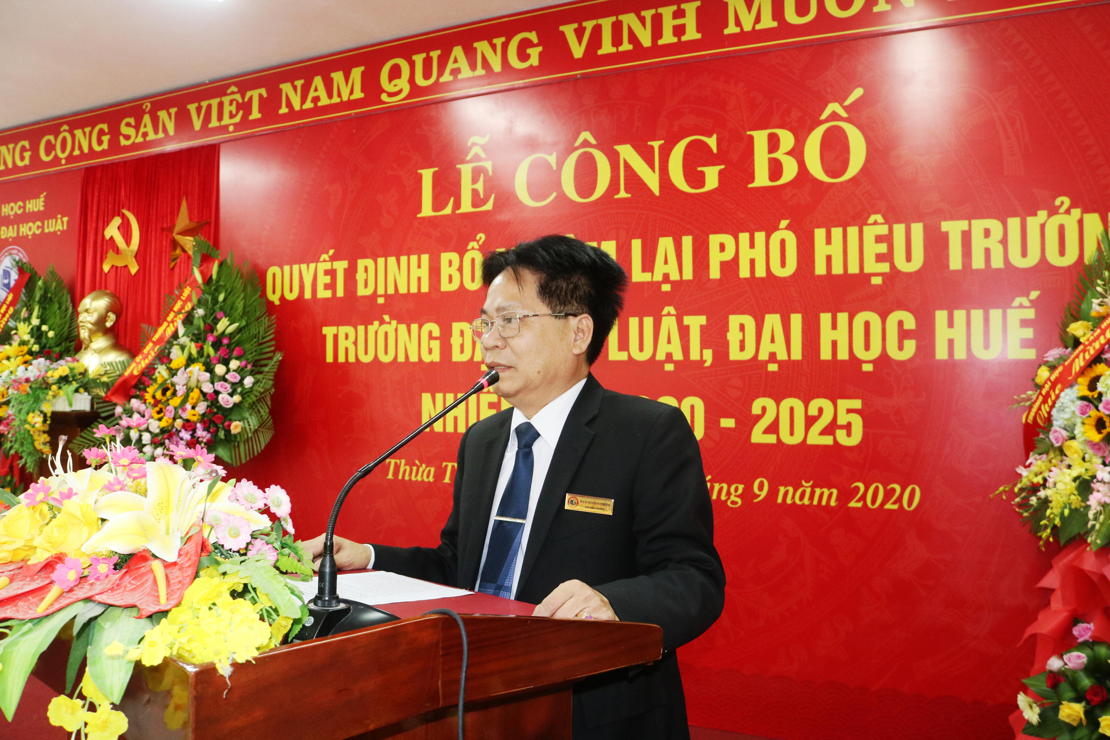 (PLVN) - Sáng nay (11/9), lãnh đạo Đại học Huế đã trao Quyết định bổ nhiệm lại ông Nguyễn Duy Phương (Phó Giáo sư, Tiến sĩ, Giảng viên cao cấp) tiếp tục giữ chức Phó Hiệu trưởng trường Đại học Luật (ĐH Huế) nhiệm kỳ 2020-2015.