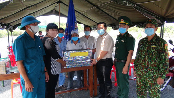 Trước đó, ông Huỳnh Quốc Thái - Chủ tịch UBND Thị xã Tân Châu, Trưởng Ban chỉ đạo phòng, chống dịch Covid-19 thị xã cũng đã đến động viên, thăm hỏi và tặng quà Tổ công tác tuyến đường thủy, Tổ tiếp nhận công dân Việt Nam làm ăn ở Campuchia về nước.