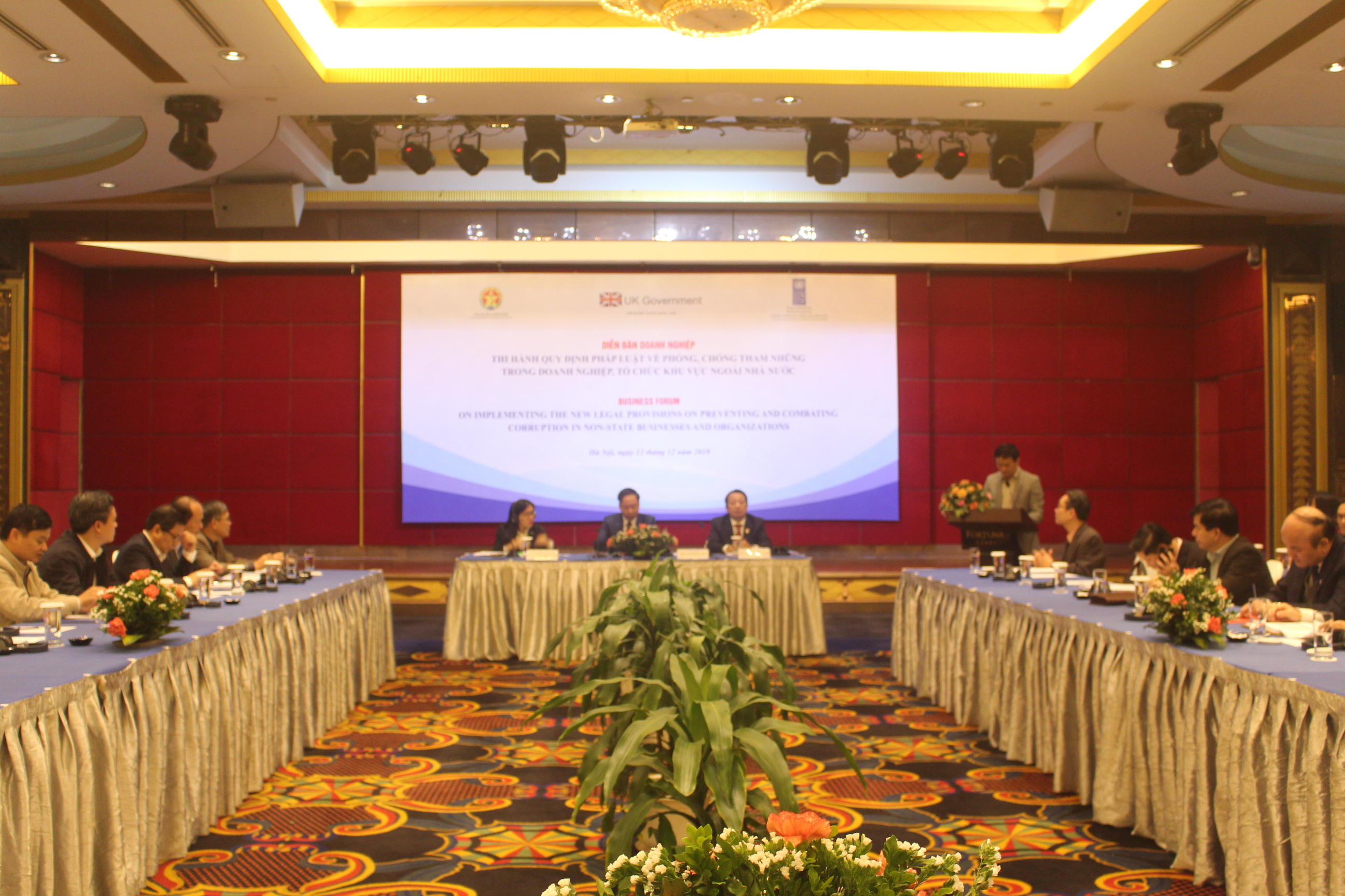Tại Diễn đàn, các đại biểu đã có một số phiên thảo luận về thực trạng thi hành những quy định hiện tại của pháp luật trong nước và quốc tế về phòng, chống và phòng ngừa tham nhũng trong doanh nghiệp và tổ chức khu vực ngoài nhà nước. Diễn đàn còn đề cập tới sự cần thiết, phù hợp của việc mở rộng phạm vi điều chỉnh của Luật Phòng, chống tham nhũng đối với khu vực này.