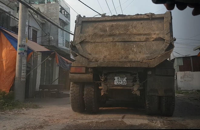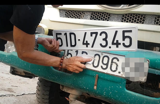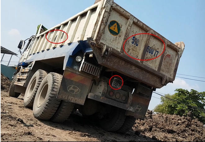Đến cuối đường TX22 xe ben bất ngờ dừng lại ở một bãi đất trống. Lái xe nhảy xuống cầm theo một cặp biển số trước và sau 51D-127.33 đến đầu xe. Nhanh thoăn thoắt, tài xế lấy một chiếc biển số dài thường gắn ở đầu xe, gắn chồng lên biển cũ 70C- 107… Gắn xong biển ở đầu xe, tài xế tiếp tục đi ra sau xe gắn biển còn lại chồng vào biển số ở đuôi chiếc xe này.