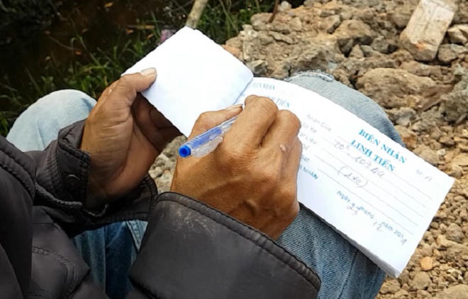 Theo biên lai mà tài xế xe san lấp mặt bằng ghi phiếu ở đây, trong ngày 23/12/2019, xe 70C-170… chạy được 4 chuyến. Xe này khi nhận bùn thải ở đường TX14 gắn biển mới có số 51D- 127.33.