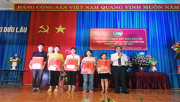 (PLVN) - Kỷ niệm 89 năm ngày thành lập Mặt trận Dân tộc thống nhất Việt Nam (18/11/1930 - 18/11/2019) và Ngày pháp luật Việt Nam, tại khu dân cư Dữu Lâu, phường Dữu Lâu, TP Việt Trì, tỉnh Phú Thọ đã diễn ra Ngày hội Đại đoàn kết toàn dân tộc.