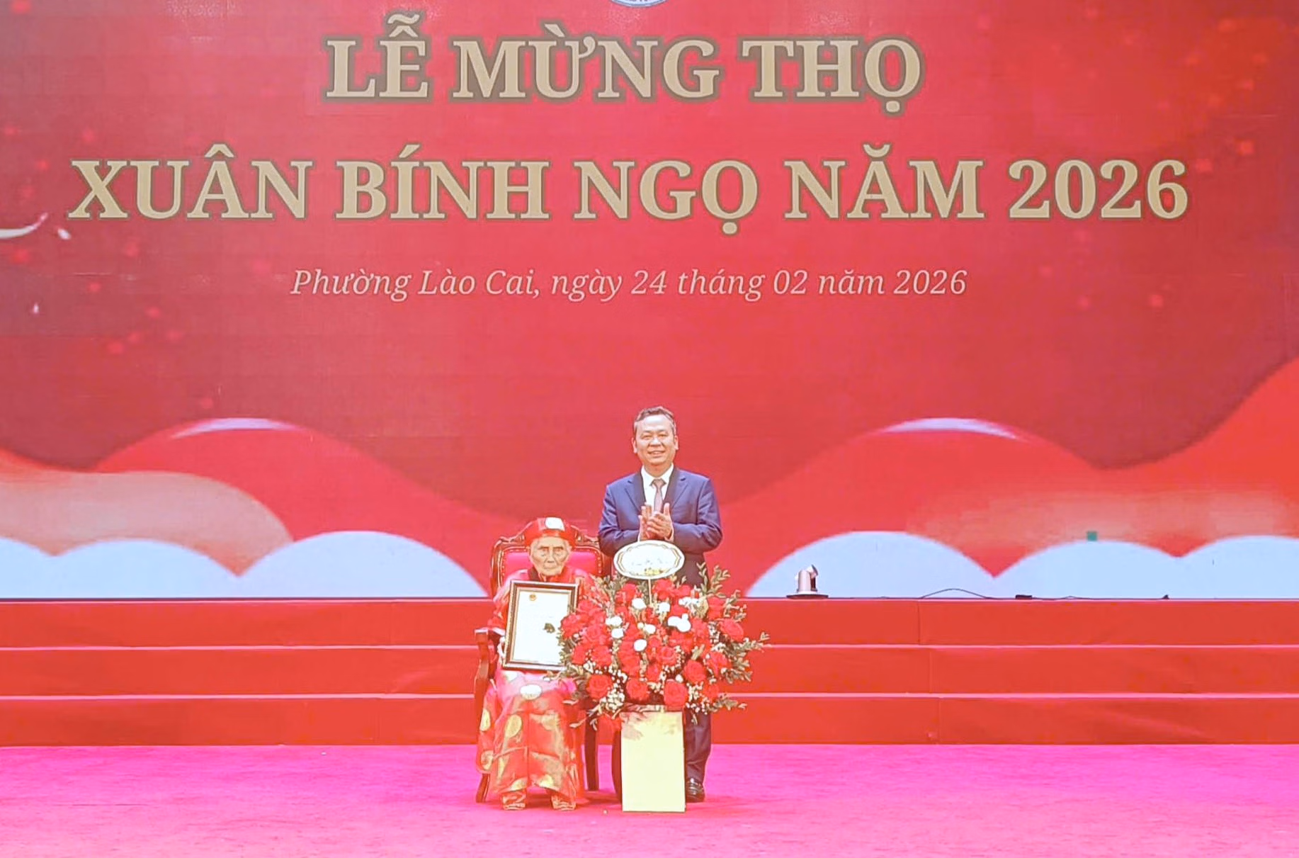 Phát biểu tại buổi lễ, Bí thư Đảng ủy phường Lào Cai Nguyễn Quốc Huy nhấn mạnh: việc tổ chức chúc thọ, mừng thọ đầu xuân không chỉ là nét đẹp văn hóa truyền thống mà còn thể hiện trách nhiệm, tình cảm và sự tri ân của cấp ủy, chính quyền đối với lớp người đi trước - những người đã có nhiều đóng góp cho gia đình và cộng đồng.