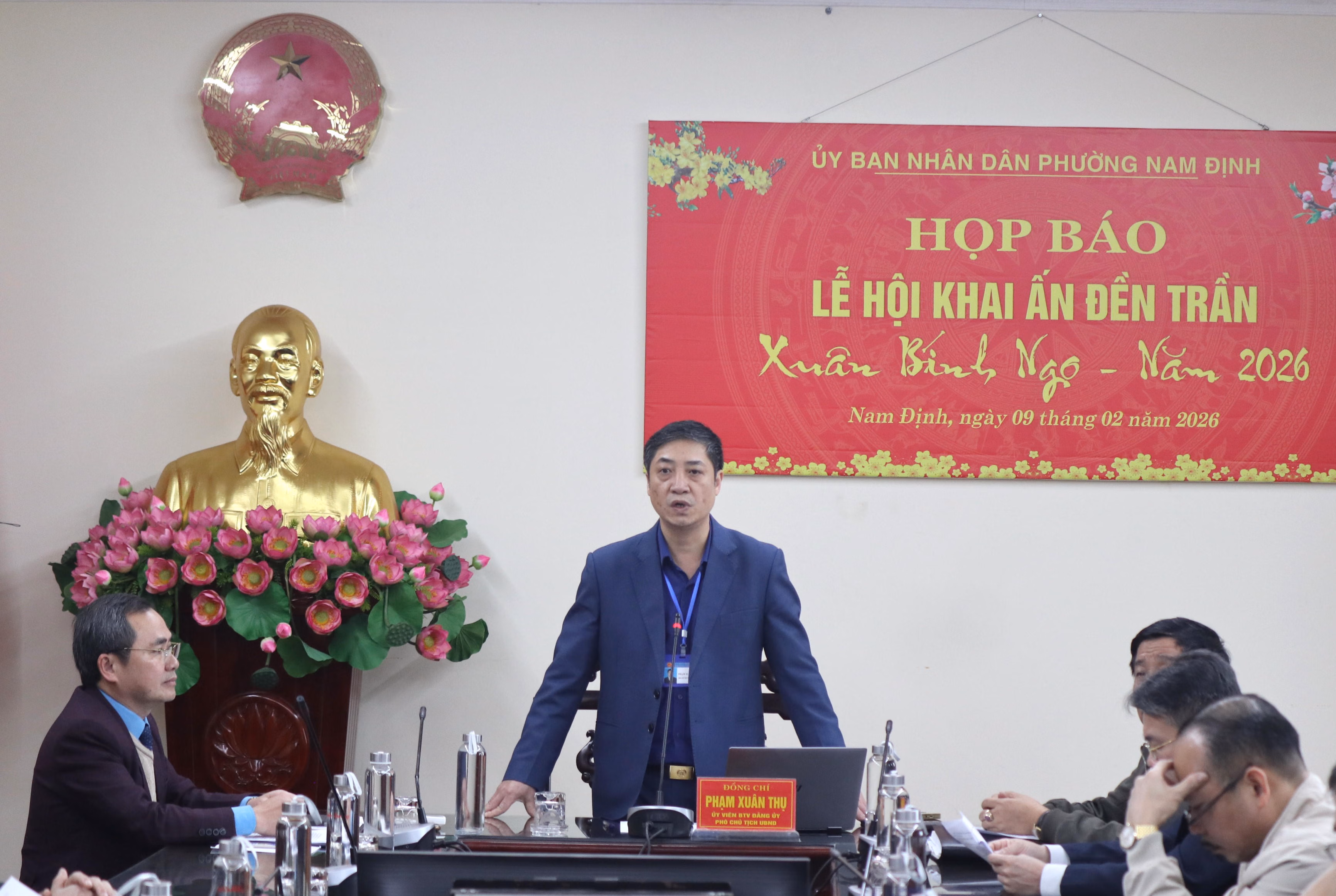 Phát biểu tại buổi họp báo, ông Phạm Xuân Thụ, Phó Chủ tịch UBND phường Nam Định cho biết: Năm nay, lễ hội khai ấn lần đầu tiên được tổ chức dưới mô hình chính quyền địa phương 2 cấp và cùng với lễ hội Đền Trần, có tới 7 lễ hội diễn ra đồng thời trên địa bàn tỉnh Ninh Bình. Do đó, Ban Thường vụ Tỉnh ủy Ninh Bình giao cho UBND tỉnh tổ chức triển khai thực hiện theo văn bản số 113 ngày 8/1/2026. Trong đó, UBND phường Nam Định được giao chủ trì lễ khai ấn Xuân Bính Ngọ 2026.