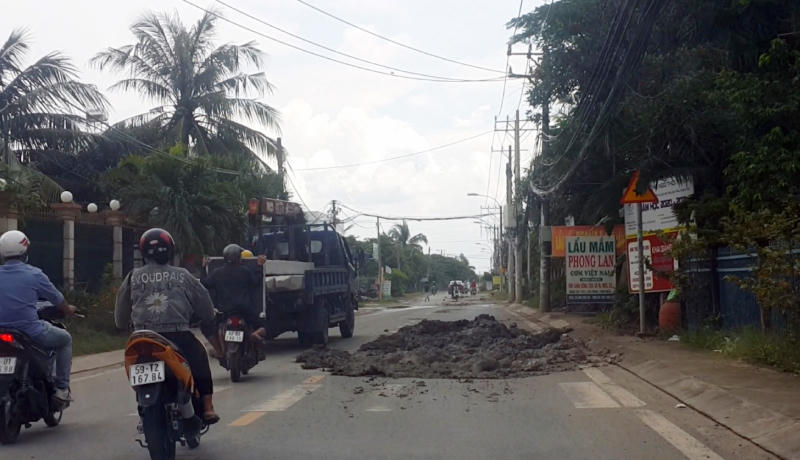 Cũng vào gần trưa 01/10, PV ghi nhận xe tải BKS 51C – 487… và xe 51C – 904… chở khoảng 40 tấn bùn không có tấm che làm bùn rơi thành vệt lớn, kéo dài từ đầu ngã 3 Nguyễn Xiễn – Long Thuận rải đều đến đường số 9. Sự cố trên khiến nhiều người đi đường và các phương tiện đang lưu thông phải lấn sang phần đường ngược lại.
