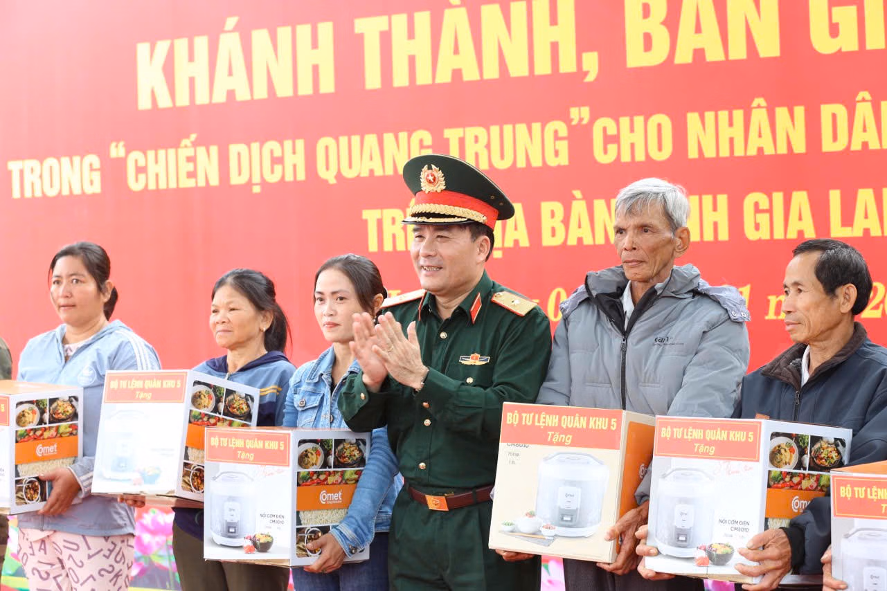 Dịp này, mỗi hộ dân còn được Quân khu 5 trao tặng giường, nồi cơm điện cùng nhiều vật dụng sinh hoạt thiết yếu, tạo điều kiện để các gia đình nhanh chóng ổn định sinh hoạt trong ngôi nhà mới. Theo kế hoạch, 435 căn nhà còn lại sẽ tiếp tục được hoàn thiện và bàn giao trước ngày 10/01/2026.