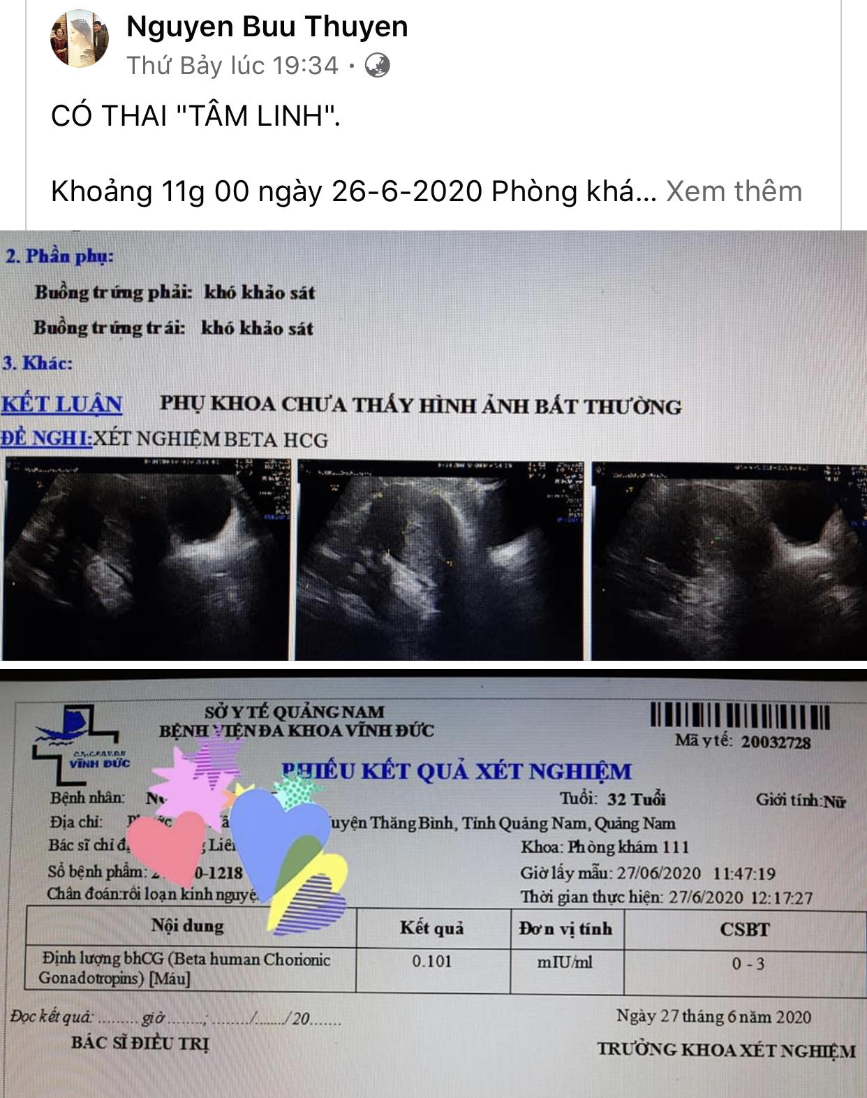 Tuy nhiên, khi khám chuyên khoa, siêu âm và xét nghiệm, các BS xác định chị D. không có thai. Điều này khiến gia đình chị ngạc nhiên vì bụng chị đã to như sắp sinh.