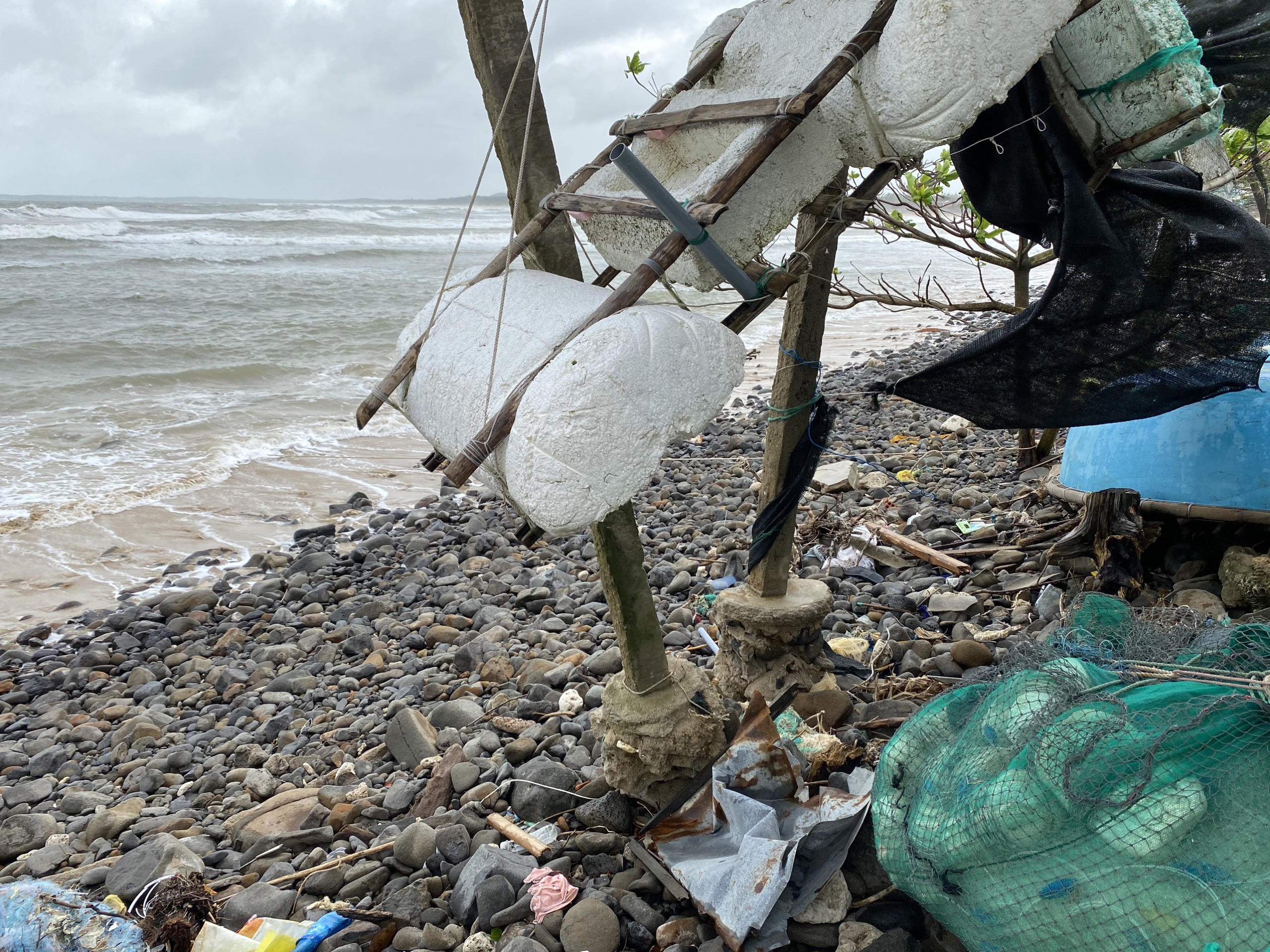 Ông Khiêm thông tin thêm, bờ biển các thôn An Cường, Phước Thiện (xã Bình Hải, huyện Bình Sơn) đã bị sạt lở từ năm 2009 do ảnh hưởng bão số 9 – Ketsana và tiếp tục bị sạt lở hàng năm. Đặc biệt, do cơn bão số 6, số 9 năm 2020 và triều cường mạnh, bờ biển khu vực này tiếp tục có diễn biến sạt lở mạnh, ăn sâu vào đất liền, ảnh hưởng đến khoảng 170 hộ dân với chiều dài sạt lở khoảng 1.550m. Trong đó có khoảng 1.200m bị sạt lở đặc biệt nghiêm trọng, đã gây sập đổ, hư hỏng nhà ở của người dân. Diễn biến sạt lở vẫn đang tiếp tục nghiêm trọng thêm do ảnh hưởng của triều cường và sóng lớn bởi gió mùa Đông Bắc.