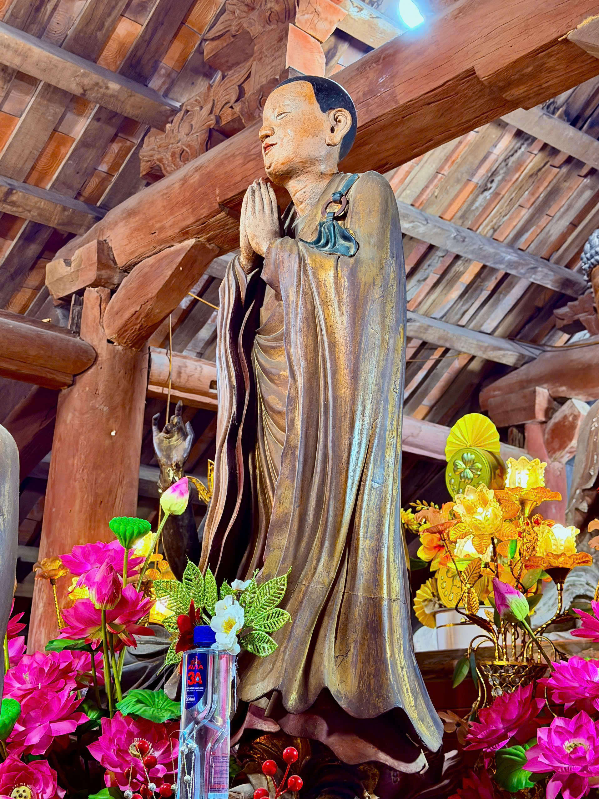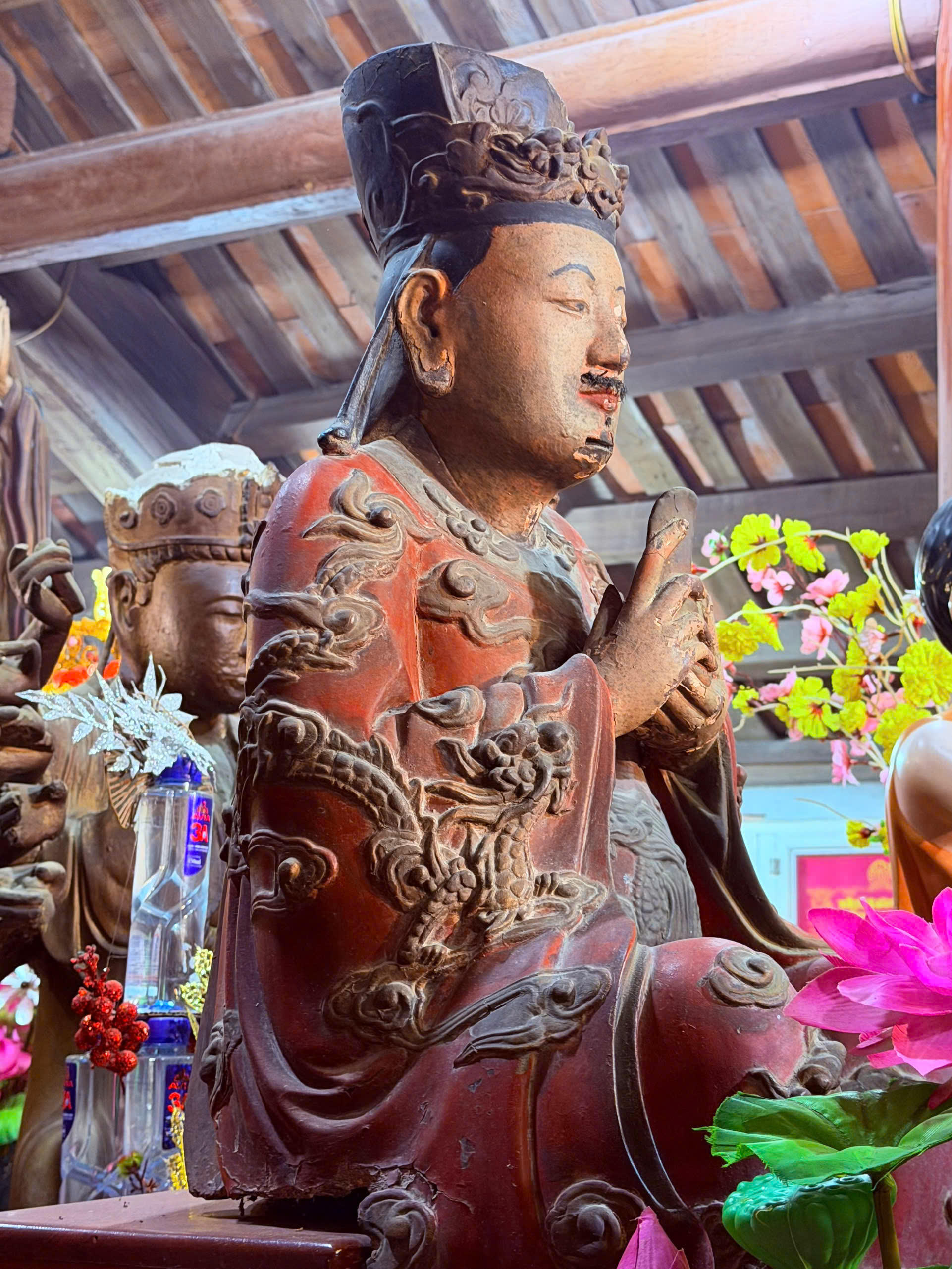 Trong đó, đa phần tượng được đắp bằng đất sét, đây đều là những pho tượng đẹp, hình dáng và kích thước quy chuẩn, cân đối, bên ngoài phủ một lớp sơn son thiếp vàng, thoạt nhìn khó có thể phân biệt là tượng đất sét hay tượng gỗ. Đa số các pho tượng vẫn được lưu giữ khá tốt.