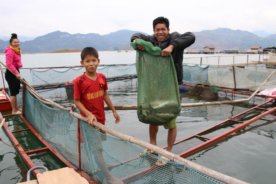 Từ những lồng cá ban đầu, đến nay đã có hàng nghìn hộ dân phát triển nghề nuôi cá lồng trên vùng lòng hồ. Hiện cả huyện đã có 47 hợp tác xã nuôi trồng thủy sản, với gần 7.000 lồng cá, sản lượng nuôi trồng và đánh bắt ước đạt 2,3 nghìn tấn/năm. Đây là mô hình tiêu biểu nhất trong công cuộc xóa đói giảm nghèo ở địa phương, nhiều gia đình không chỉ thoát nghèo mà còn vươn lên làm giàu.